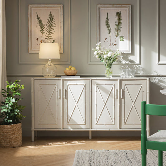 Elstowe Faux Bamboo Large Sideboard, Shaded White