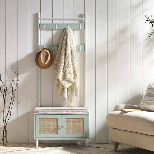 Frances Woven Rattan 1-Door Bathroom Cabinet, Mint