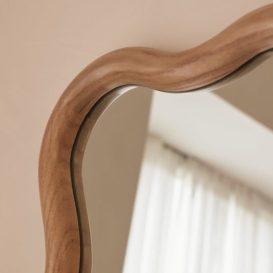 Marea - Light Wood Wavy Retro Wall Mirror 100cm x 70cm