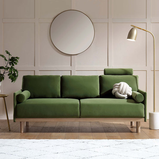 Timber Fern Green Velvet Sofa, Large 3-Seater Chaise Sofa Left Hand Facing