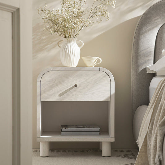Maude 1 Drawer Bedside Table, Washed White Ash