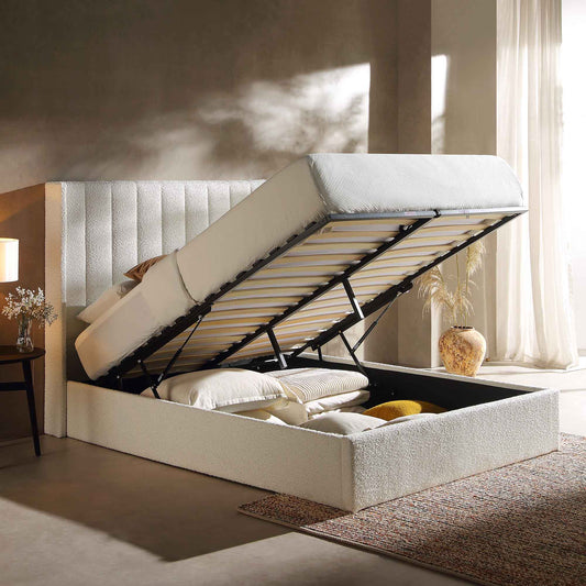 Egerie Curved Headboard Beige Boucle Ottoman Storage Bed