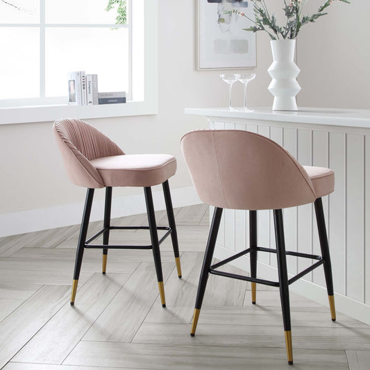 Miyae Set of 2 Pleated Pale Pink Velvet Upholstered Counter Stools