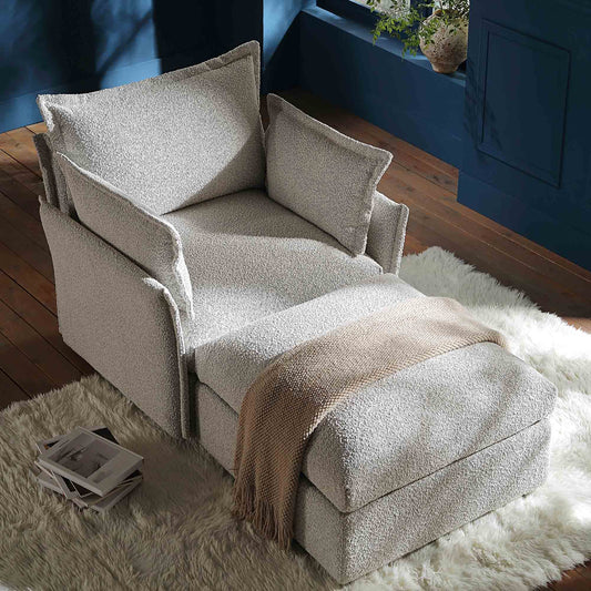 Byron Pillow Edge Mist Grey Boucle Modular Sofa, 4-Seater Chaise