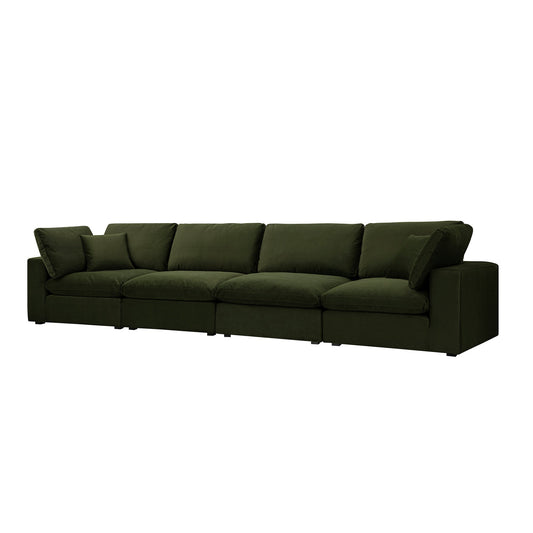 Lutyens Moss Green Velvet Modular Sofa, 4-Piece