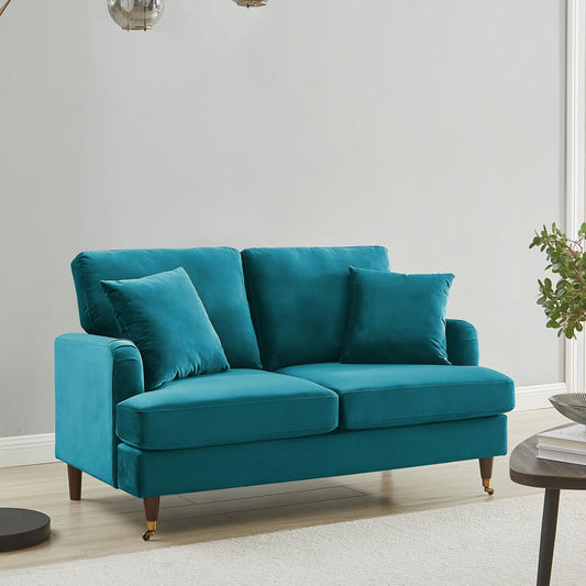 Brigette 2-Seater Teal Velvet Sofa with Antique Brass Castor Legs