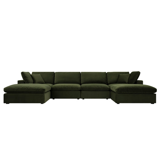 Lutyens Moss Green Velvet Modular Sofa, 6-Piece U-Shape Set