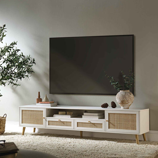 Frances Woven Rattan 200cm Wide TV Unit, White