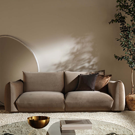 Lutyens Taupe Velvet Modular Sofa, Stool