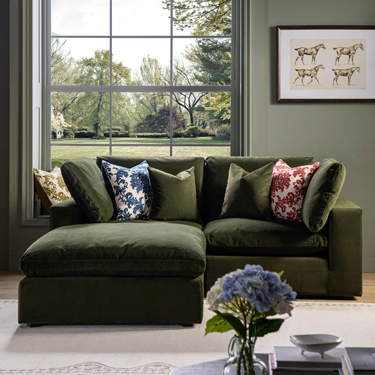 Lutyens Moss Green Velvet Modular Sofa, 2-Piece Chaise