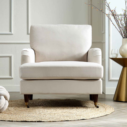 Brigette Beige Velvet Armchair with Antique Brass Castor Legs