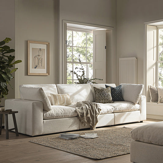 Byron Pillow Edge Beige Fabric Modular Sofa, 3-Seater Chaise