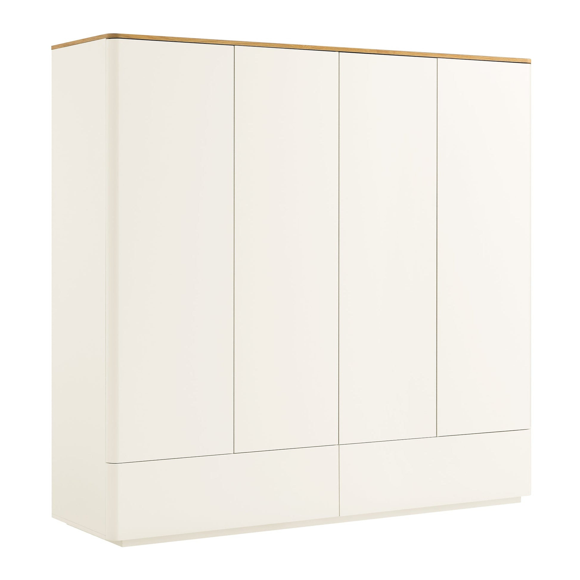 Agnes Curved Edge 4-Door Wardrobe, Off White with Oak Top