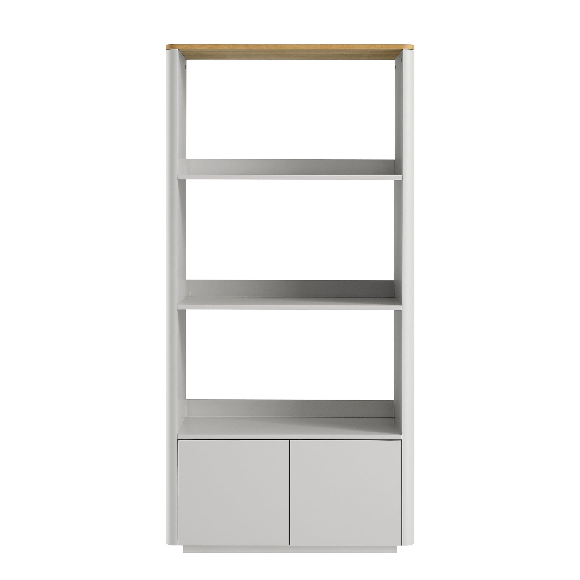 Agnes Curved Edge Bookcase, Dove Grey with Oak Top
