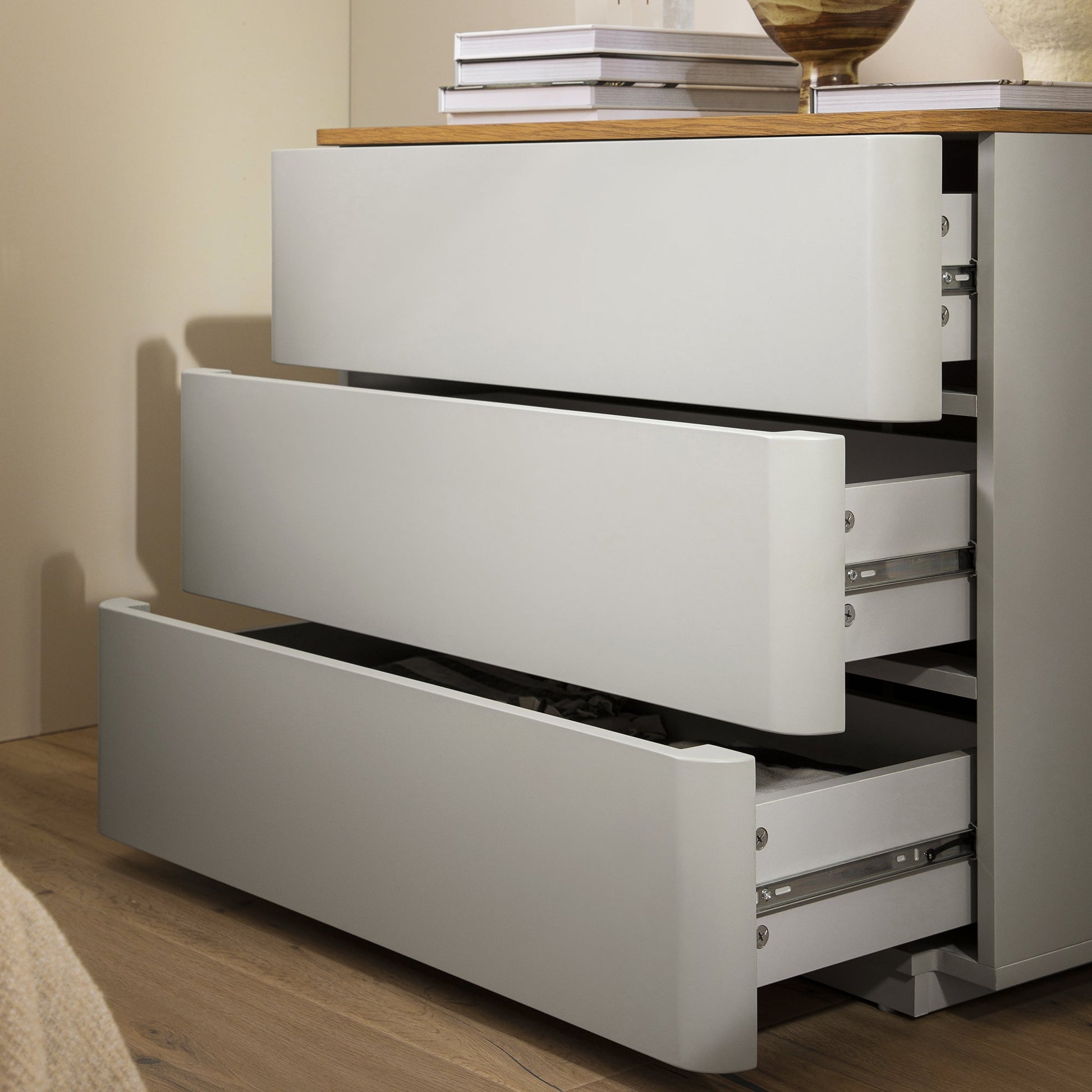 Agnes Curved Edge Chest of 3 Drawers, Dove Grey with Oak Top