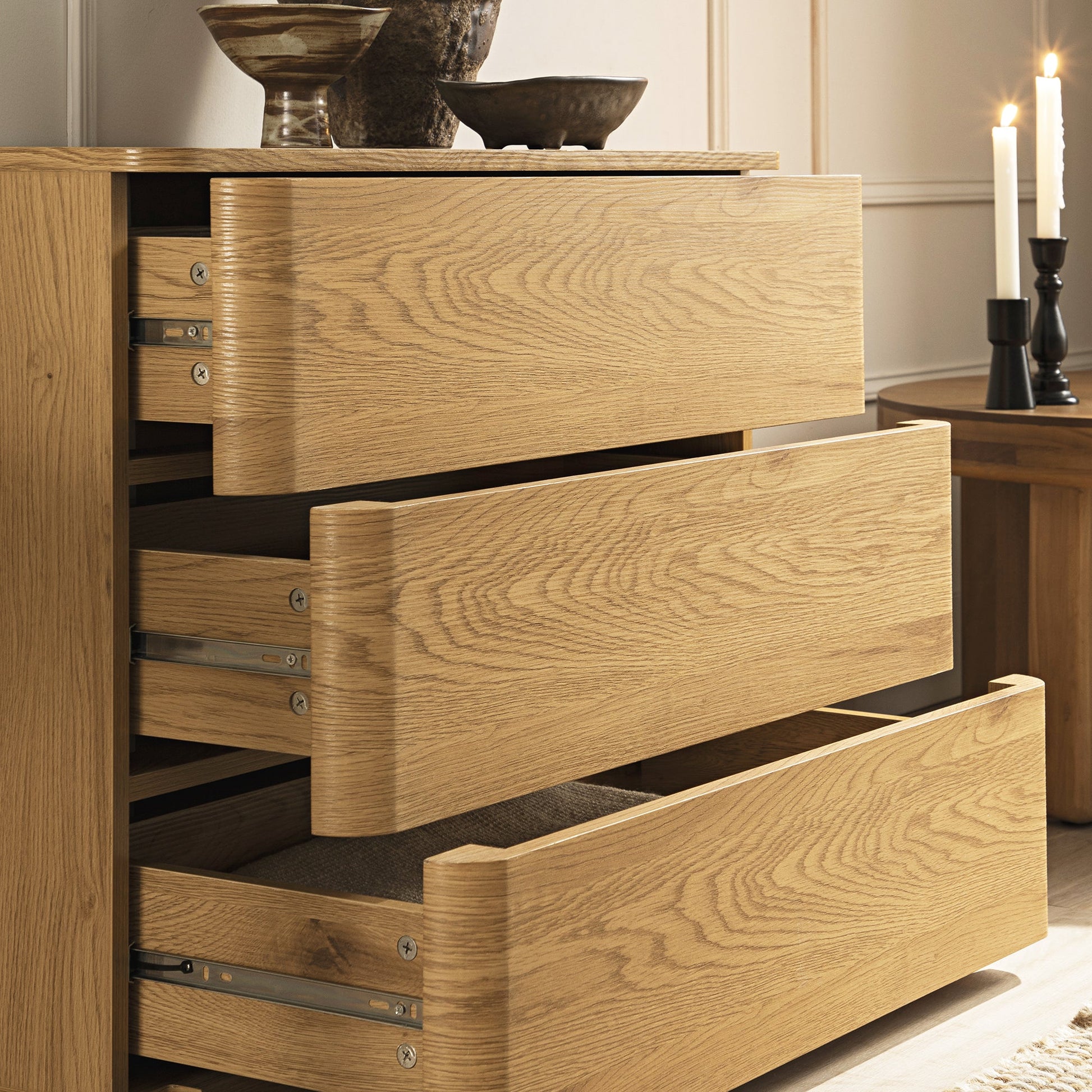 Agnes Curved Edge Chest of 3 Drawers, Natural