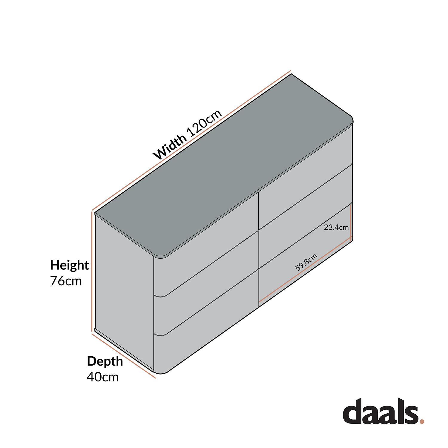 Agnes Curved Edge Chest of 6 Drawers, Dove Grey with Oak Top