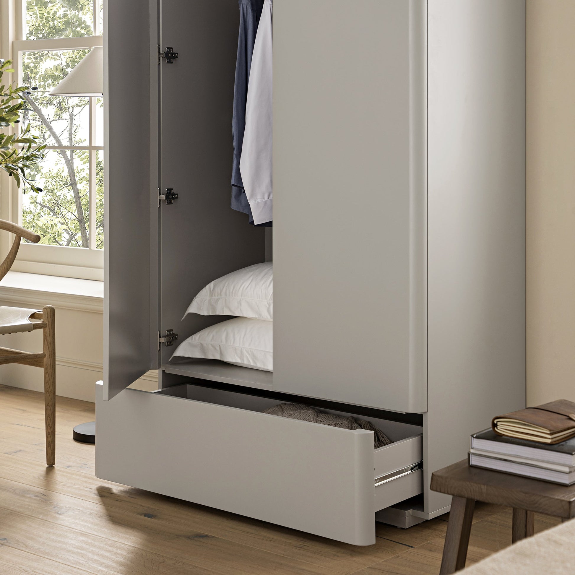 Agnes Curved Edge Double Wardrobe, Dove Grey with Oak Top