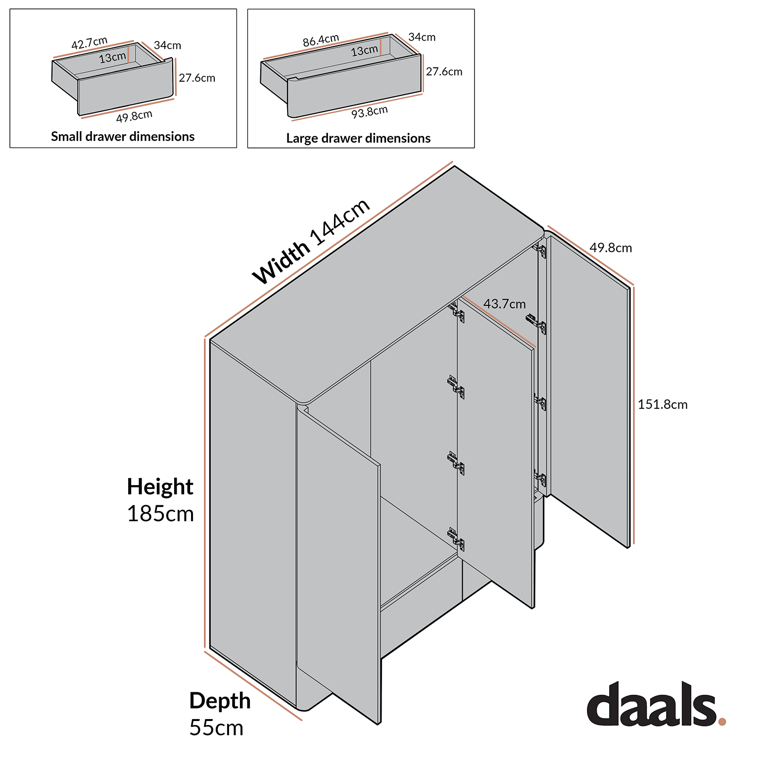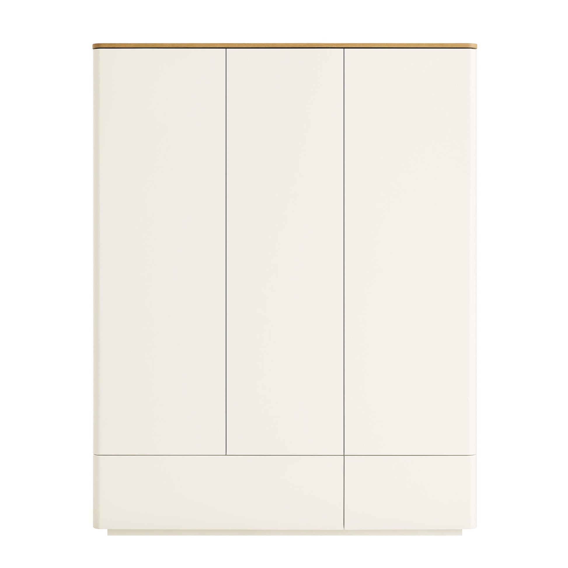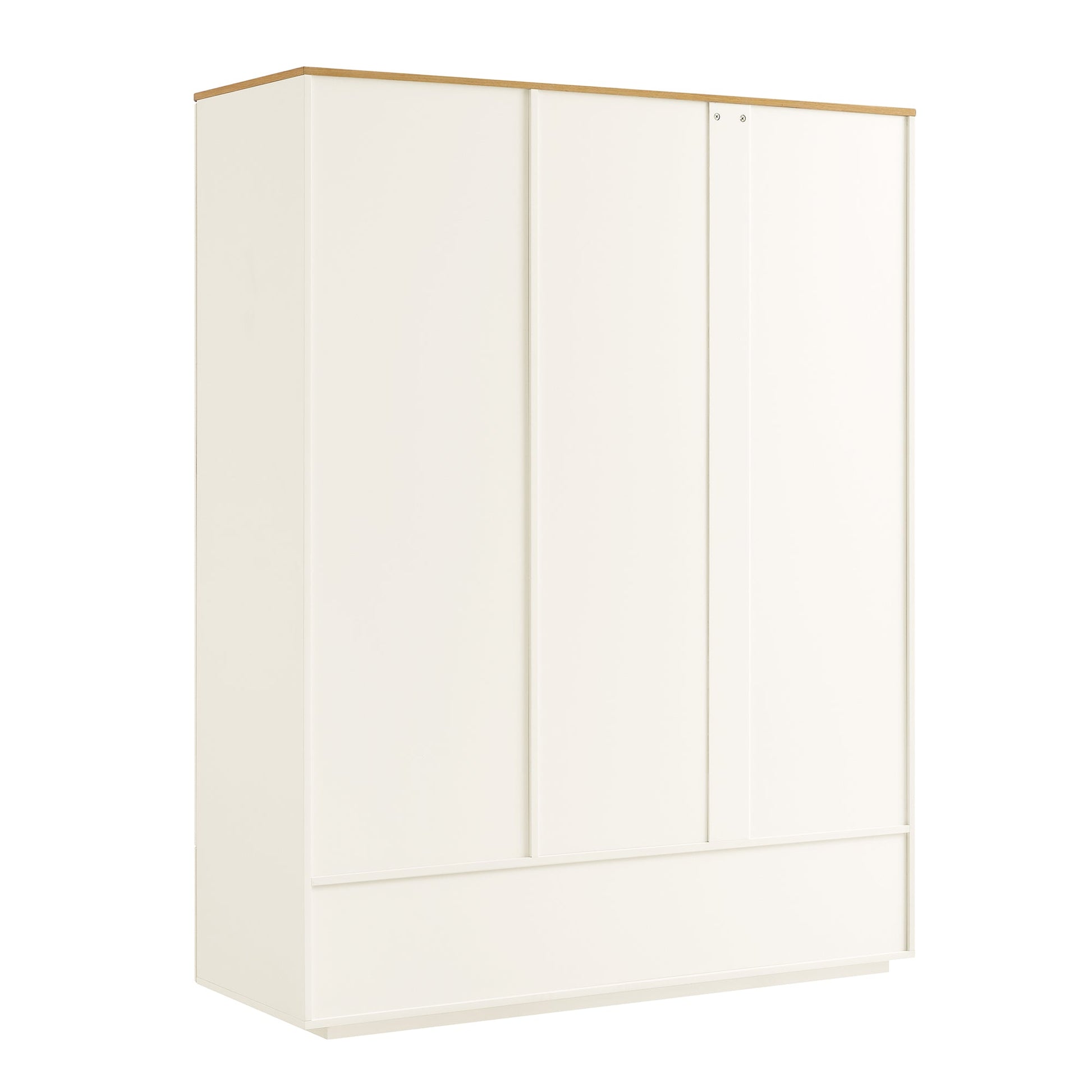 Agnes Curved Edge Triple Wardrobe, Off White with Oak Top