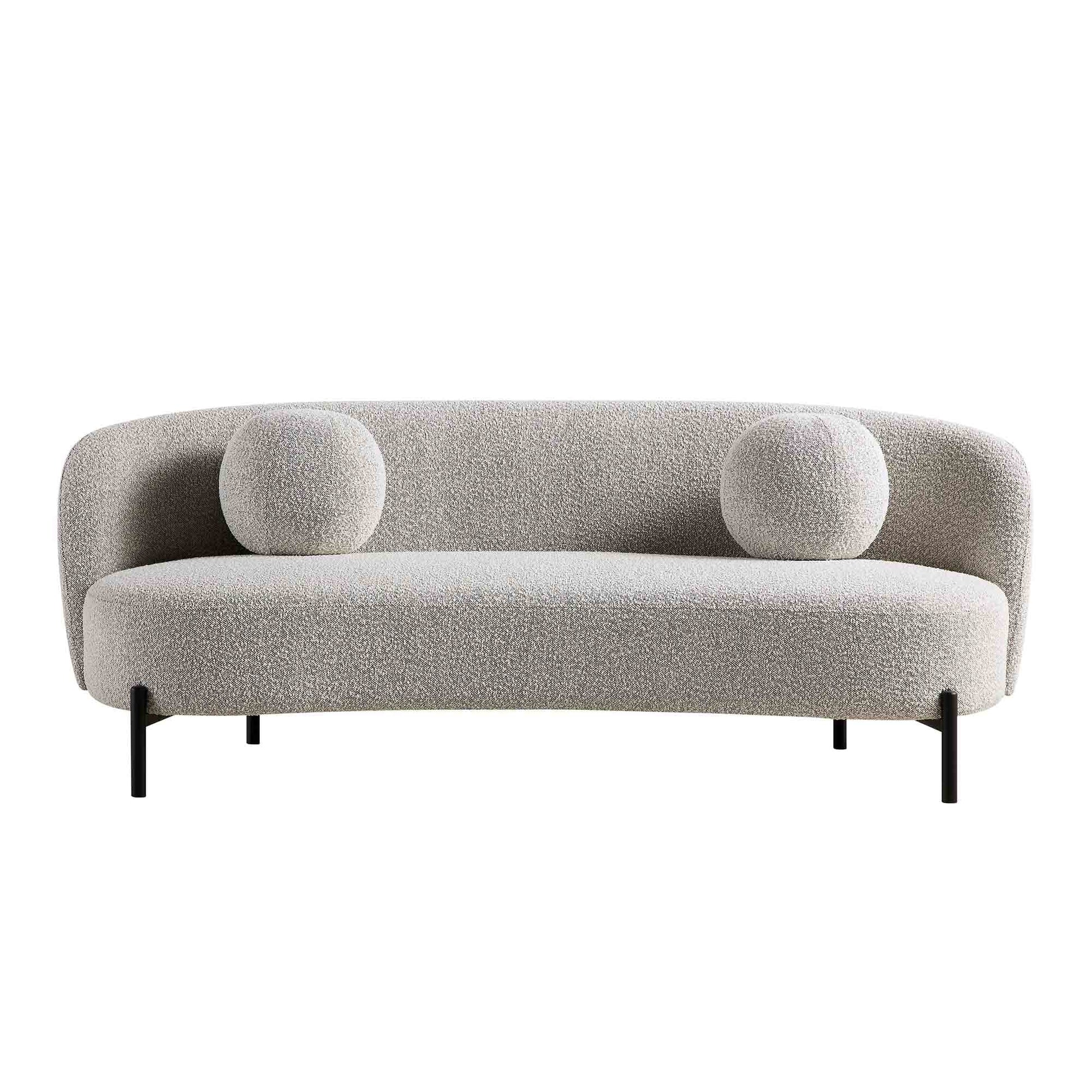 Amboise 3-Seater Curved Sofa with Ball Cushions, Mist Grey Boucle