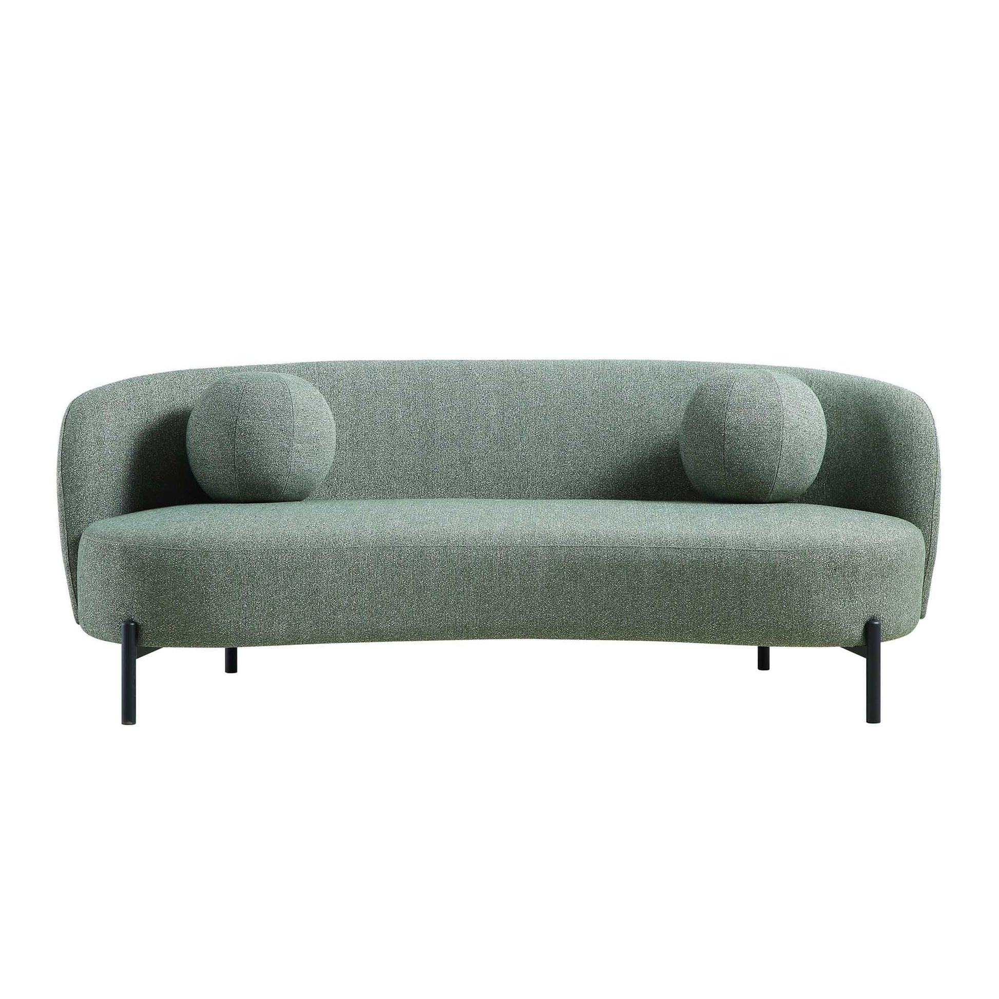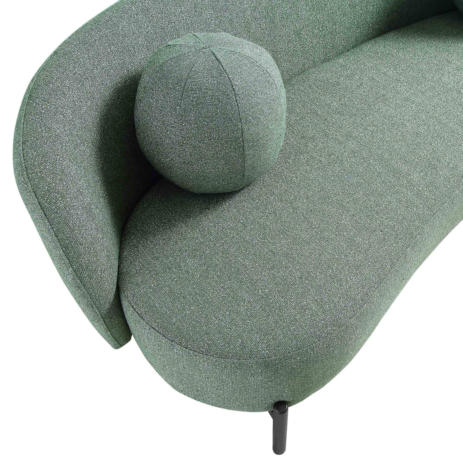 Amboise 3-Seater Curved Sofa with Ball Cushions, Spruce Green Textured Fabric
