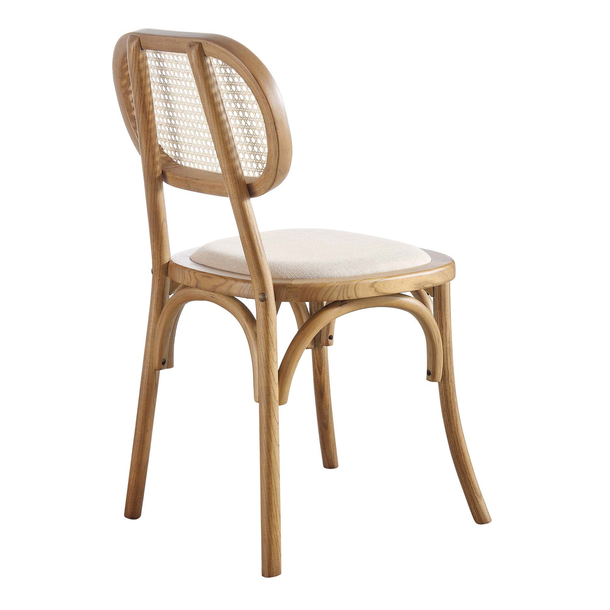 Anya Set of 2 Cane Rattan and Upholstered Dining Chairs, Light Walnut