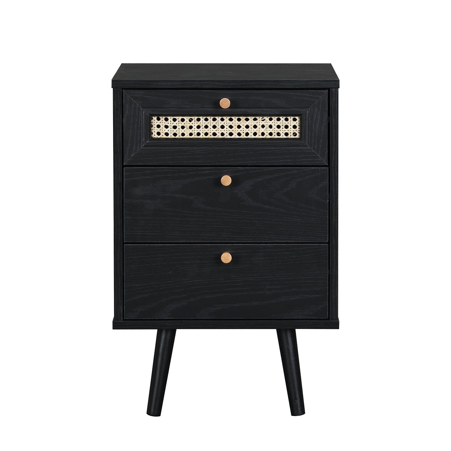 Anya Woven Rattan 3-Drawer Bedside Table in Black Colour
