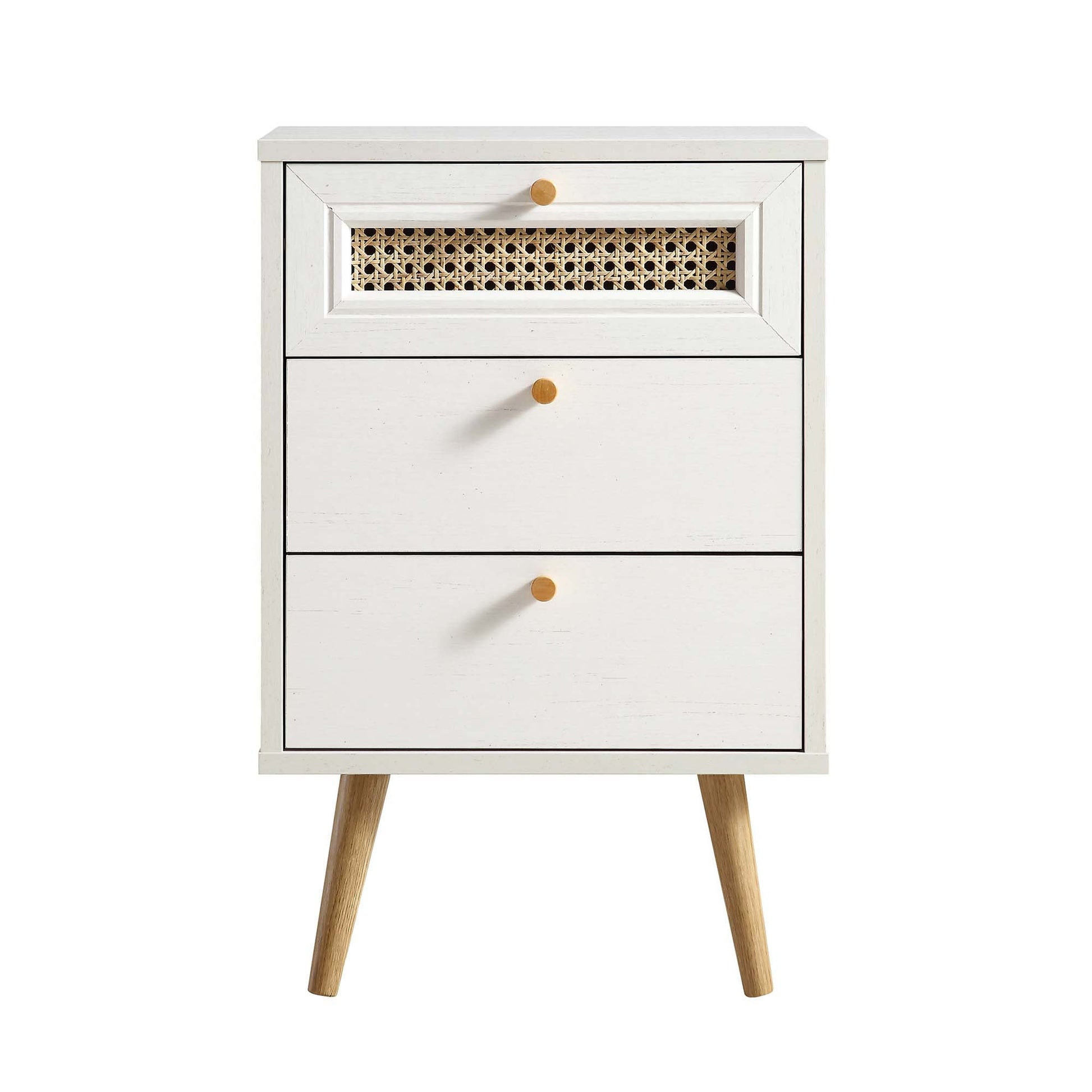 Anya Woven Rattan 3-Drawer Bedside Table in White