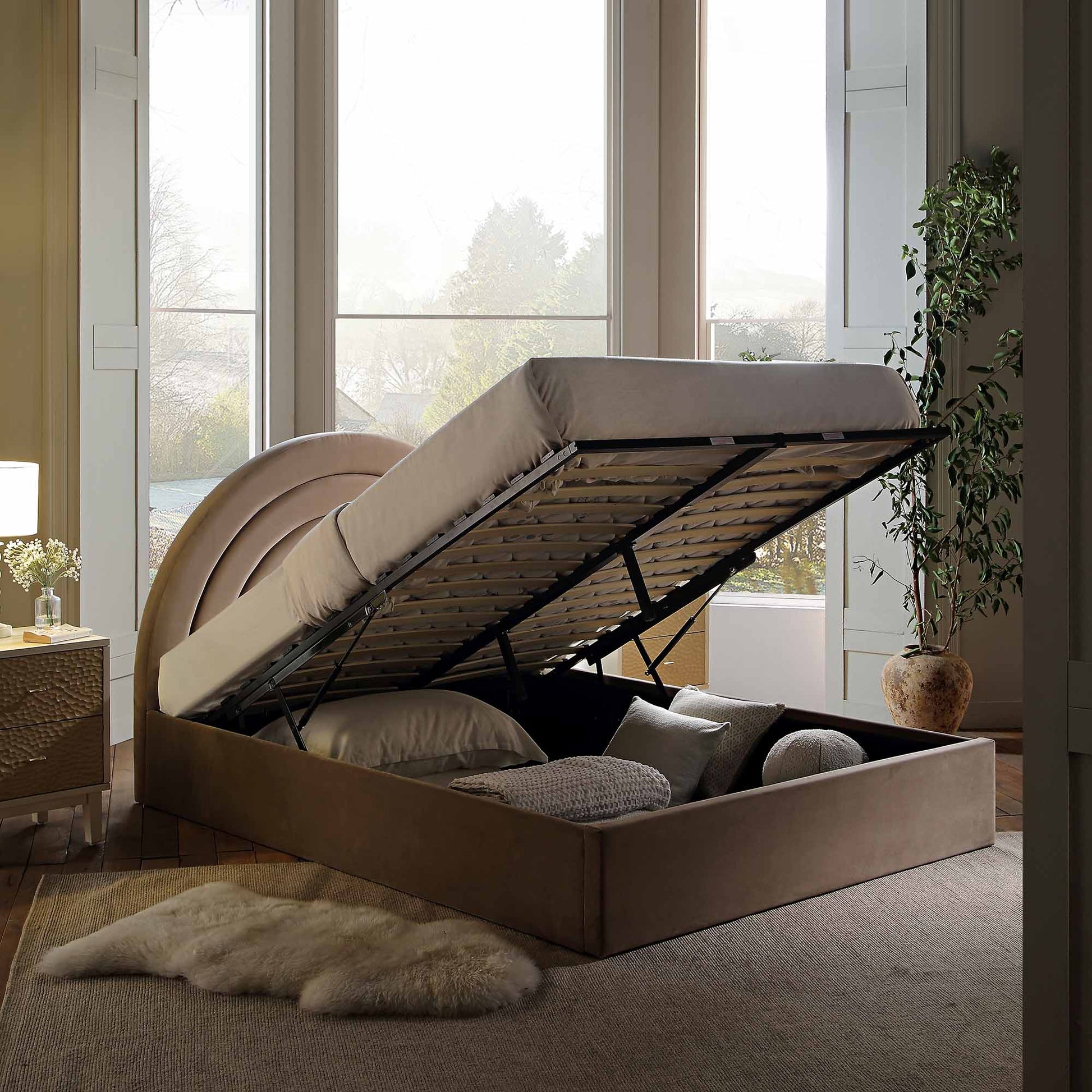 Archer Mink Velvet Ottoman Storage Bed