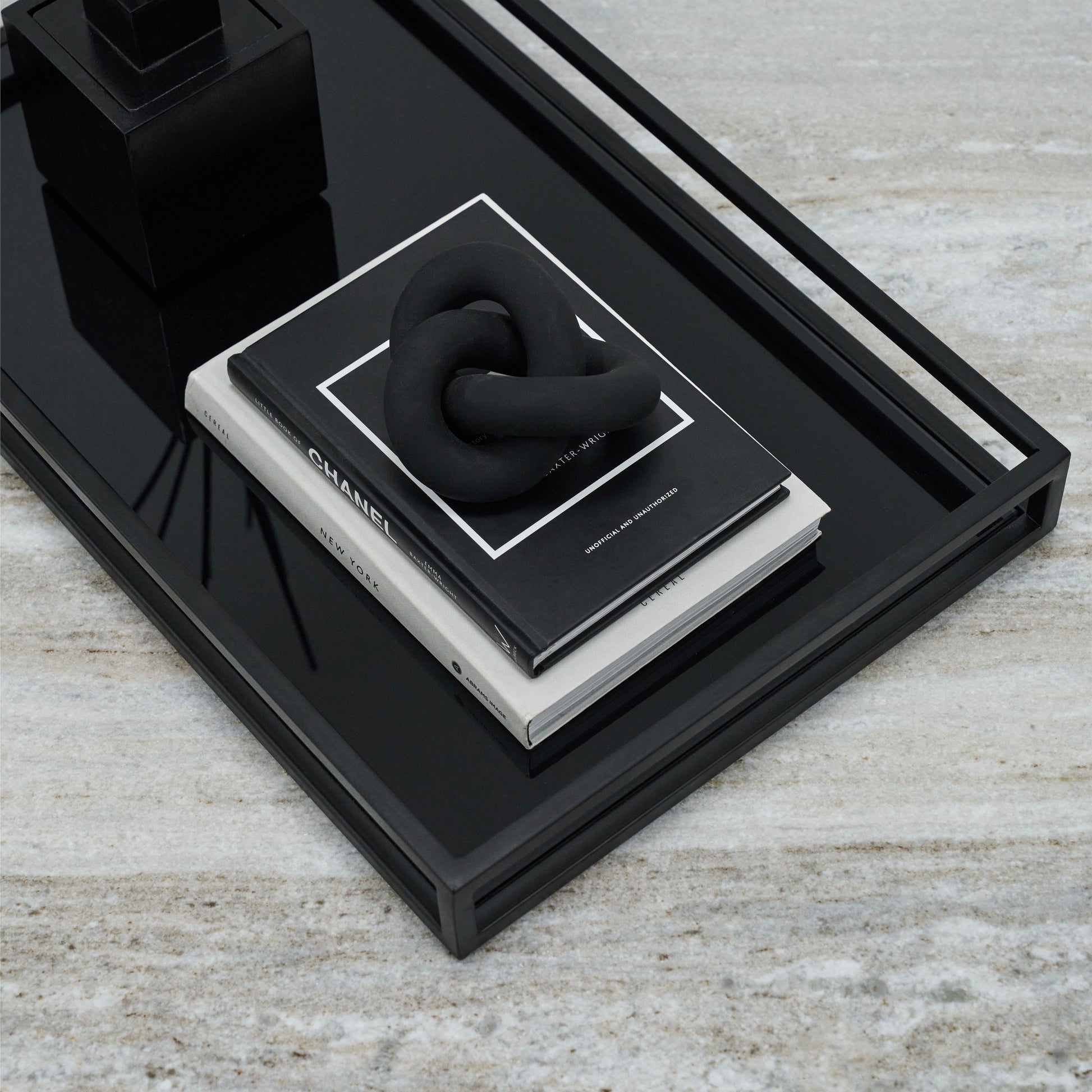 Brooklyn - Black Modern Large Rectangle Tinted Mirrored Decorative Tray