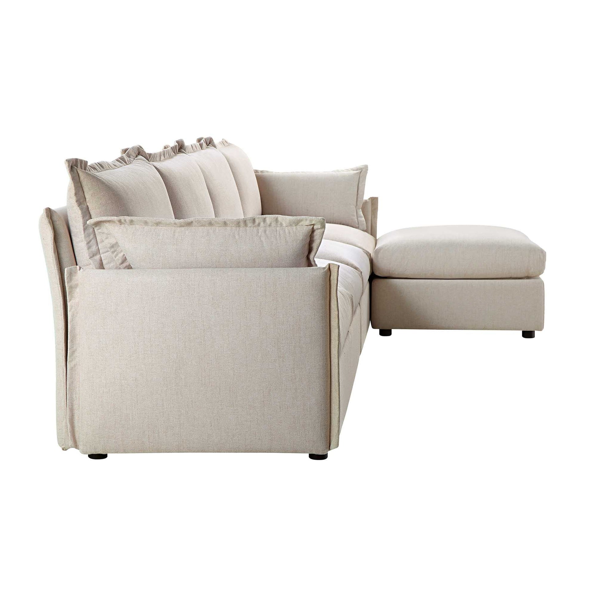 Byron Pillow Edge Beige Fabric Modular Sofa, 4-Seater Chaise