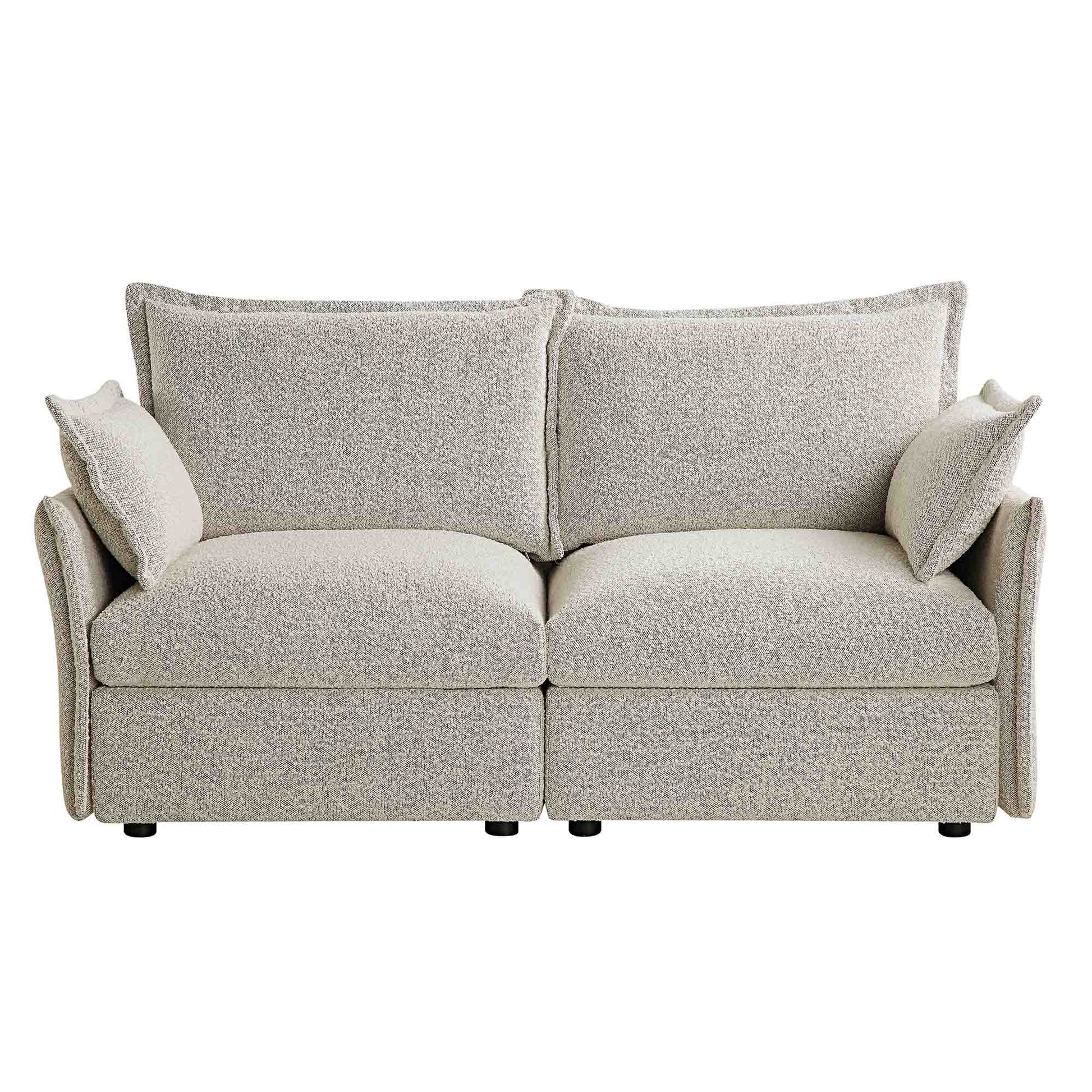 Byron Pillow Edge Mist Grey Boucle Modular Sofa, 2-Seater