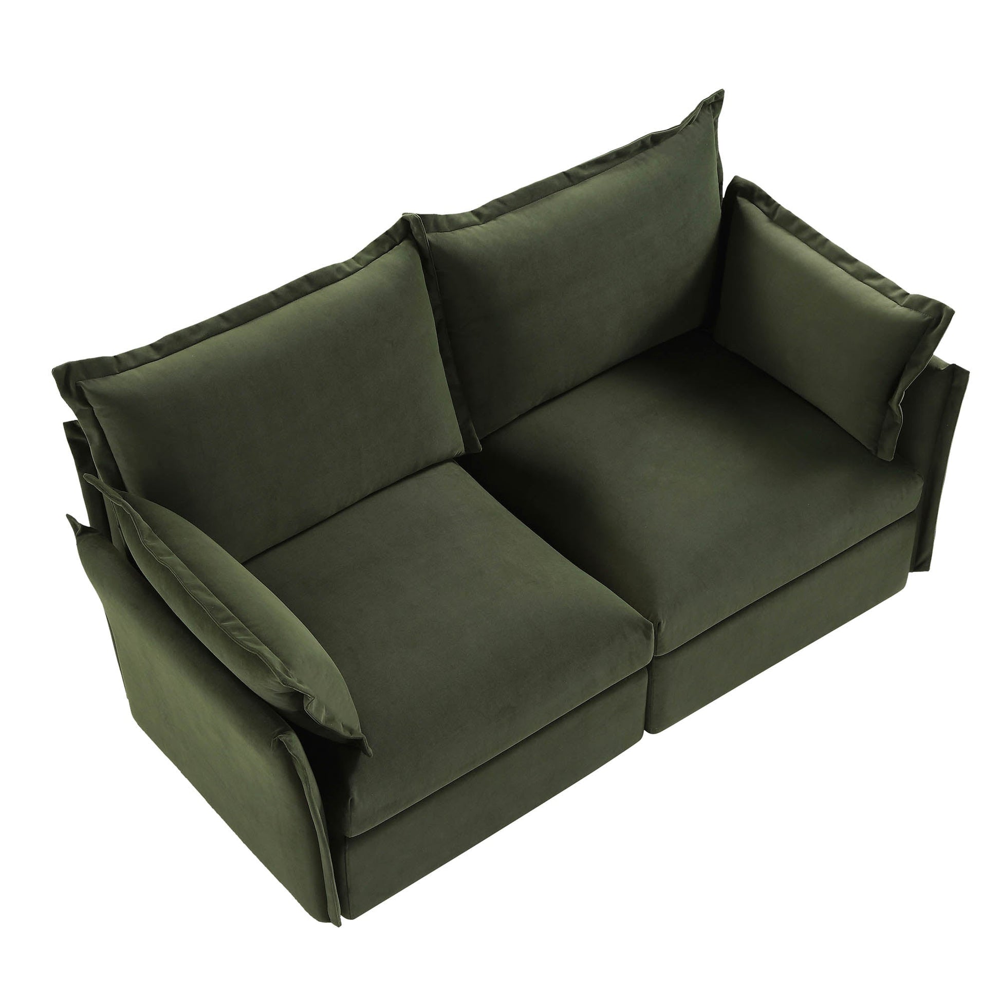 Byron Pillow Edge Moss Green Velvet Modular Sofa, 2-Seater