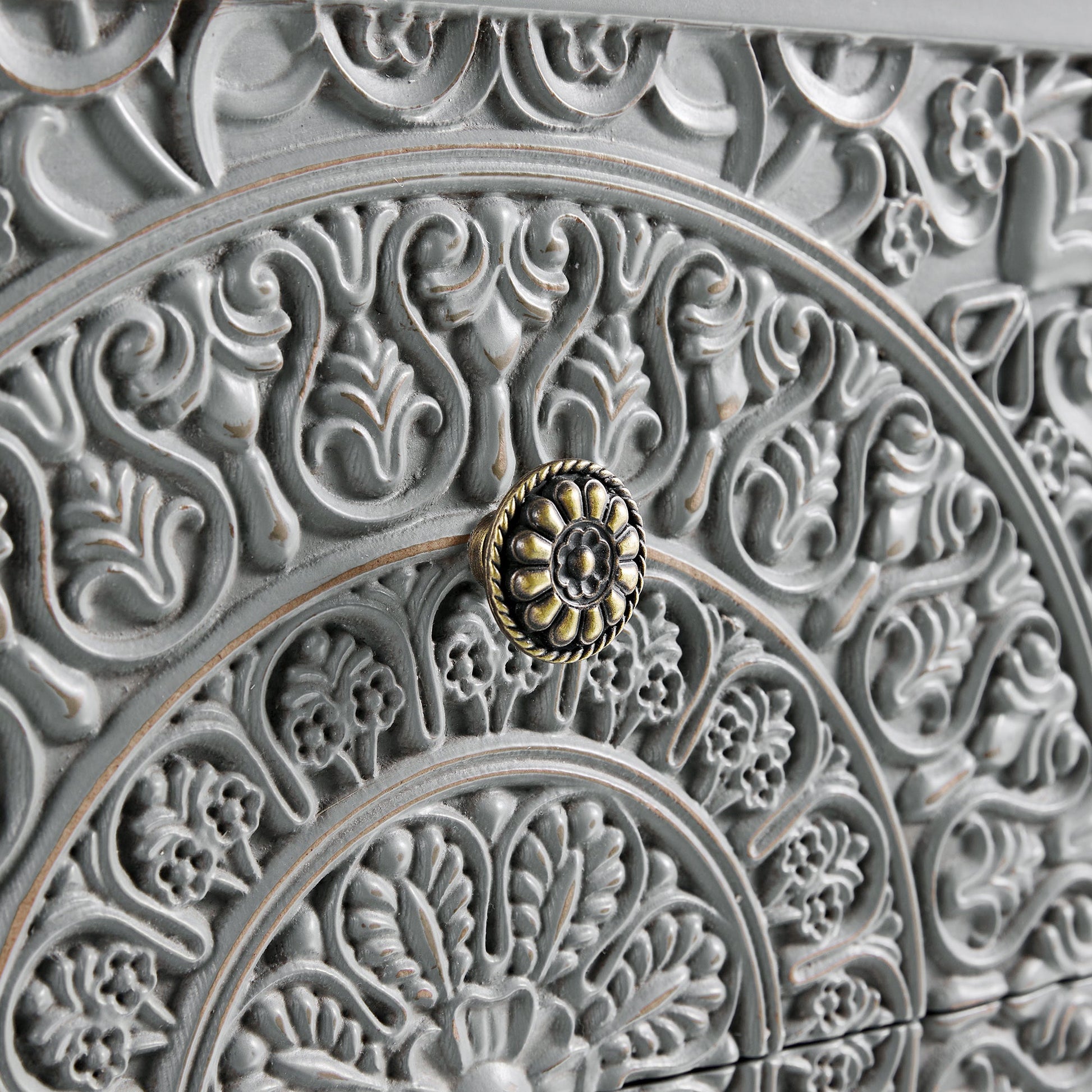 Chantilly Mid Grey Carved 2 Drawer Bedside Table