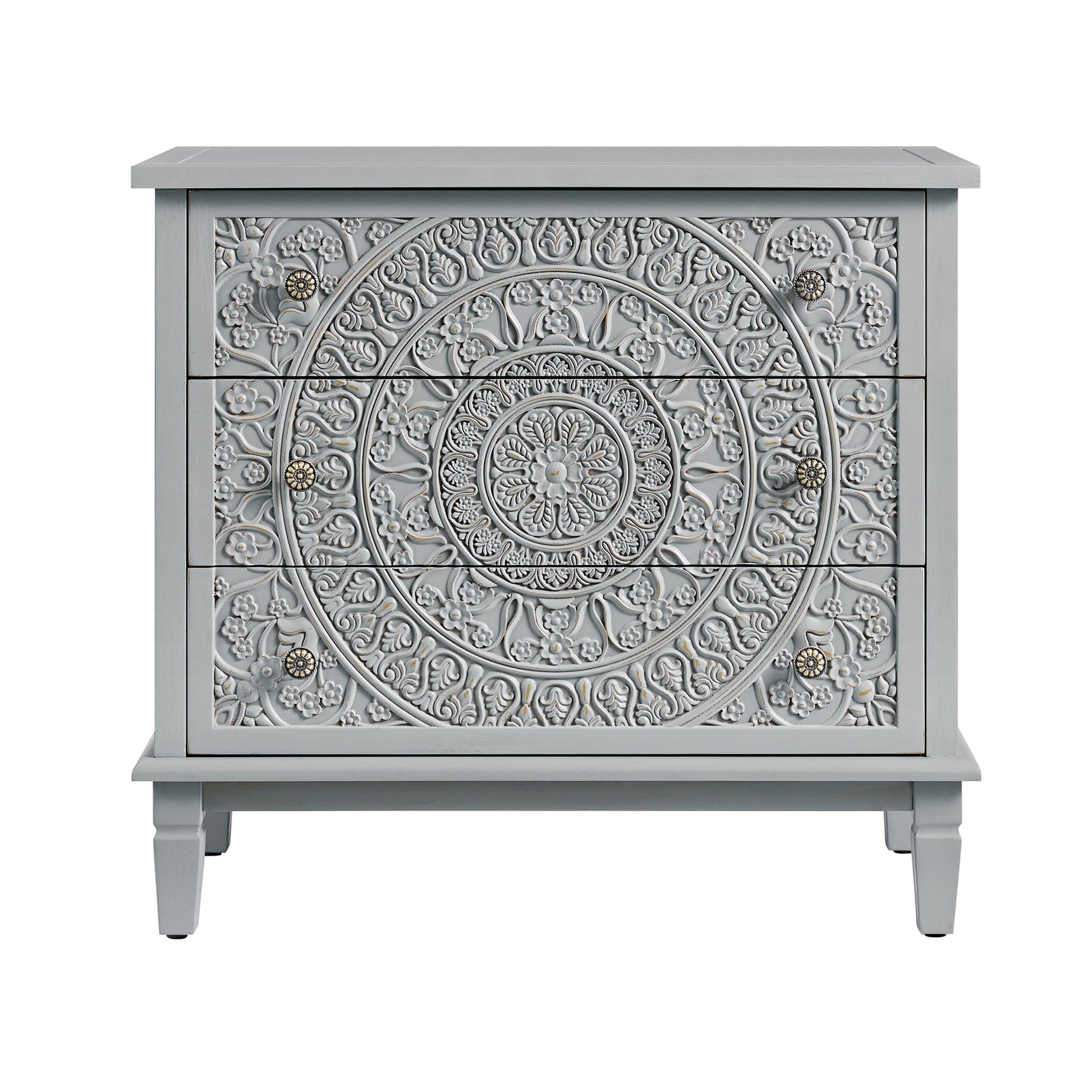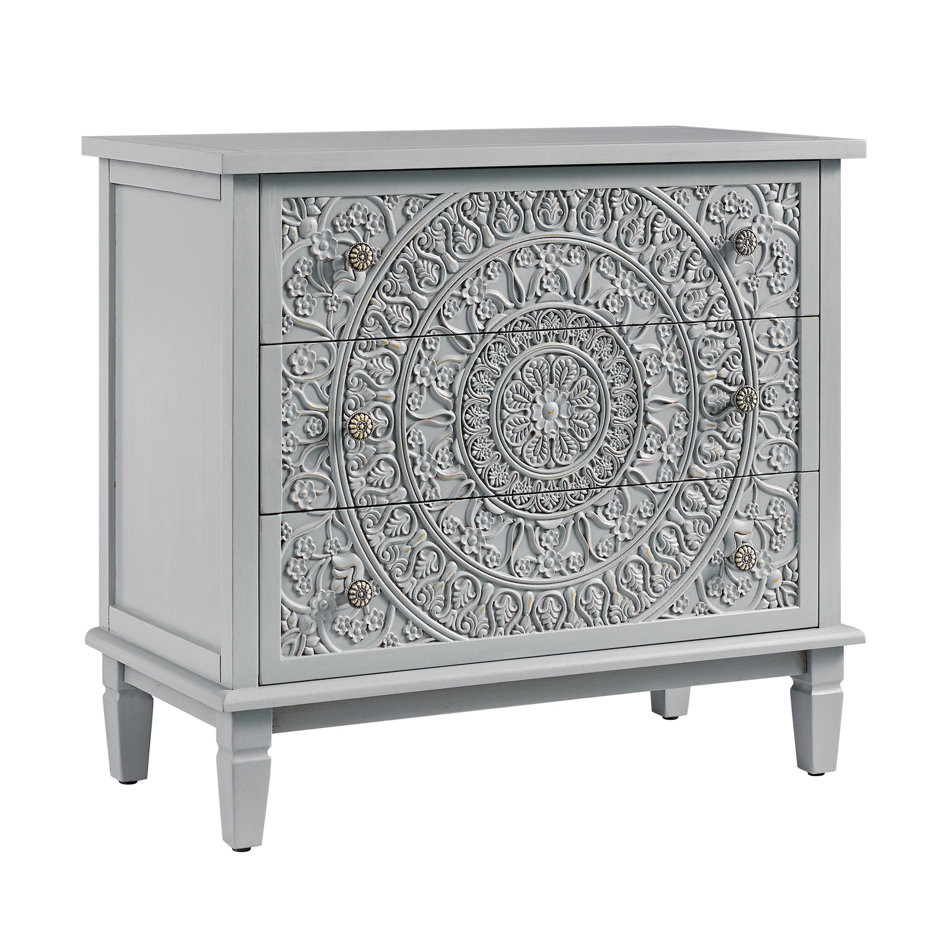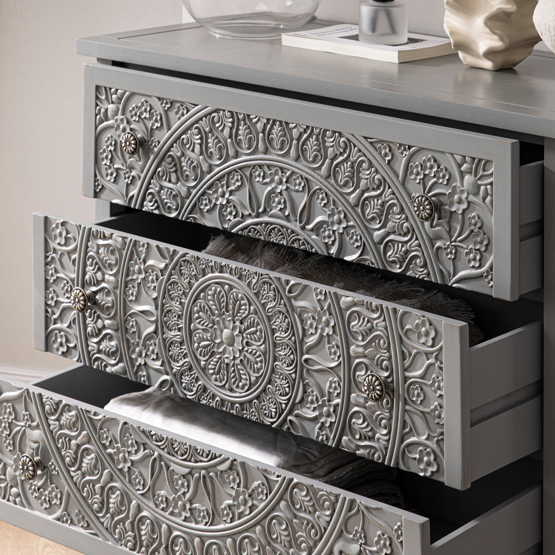 Chantilly Mid Grey Carved 3 Drawer Chest
