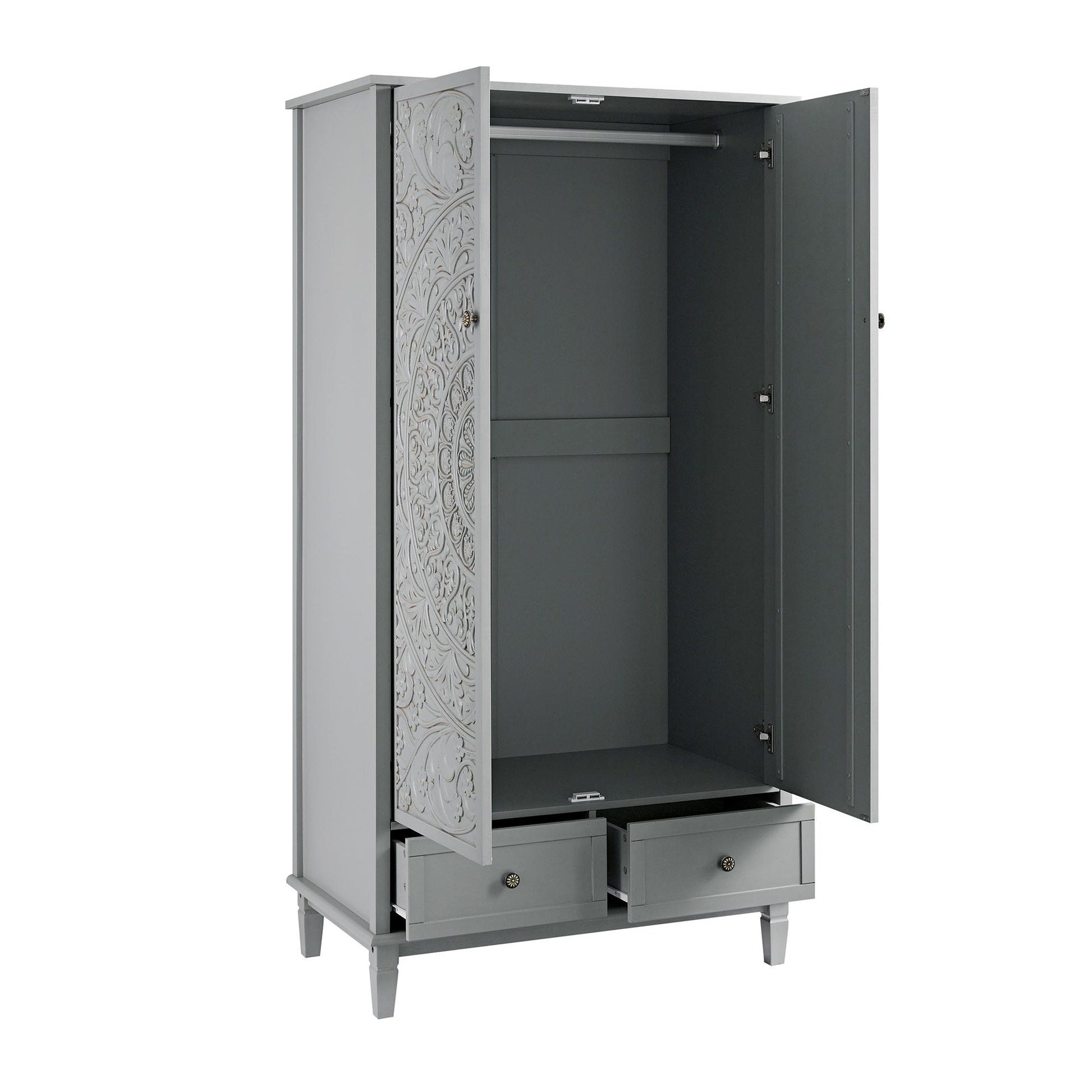 Chantilly Mid Grey Carved Double Wardrobe