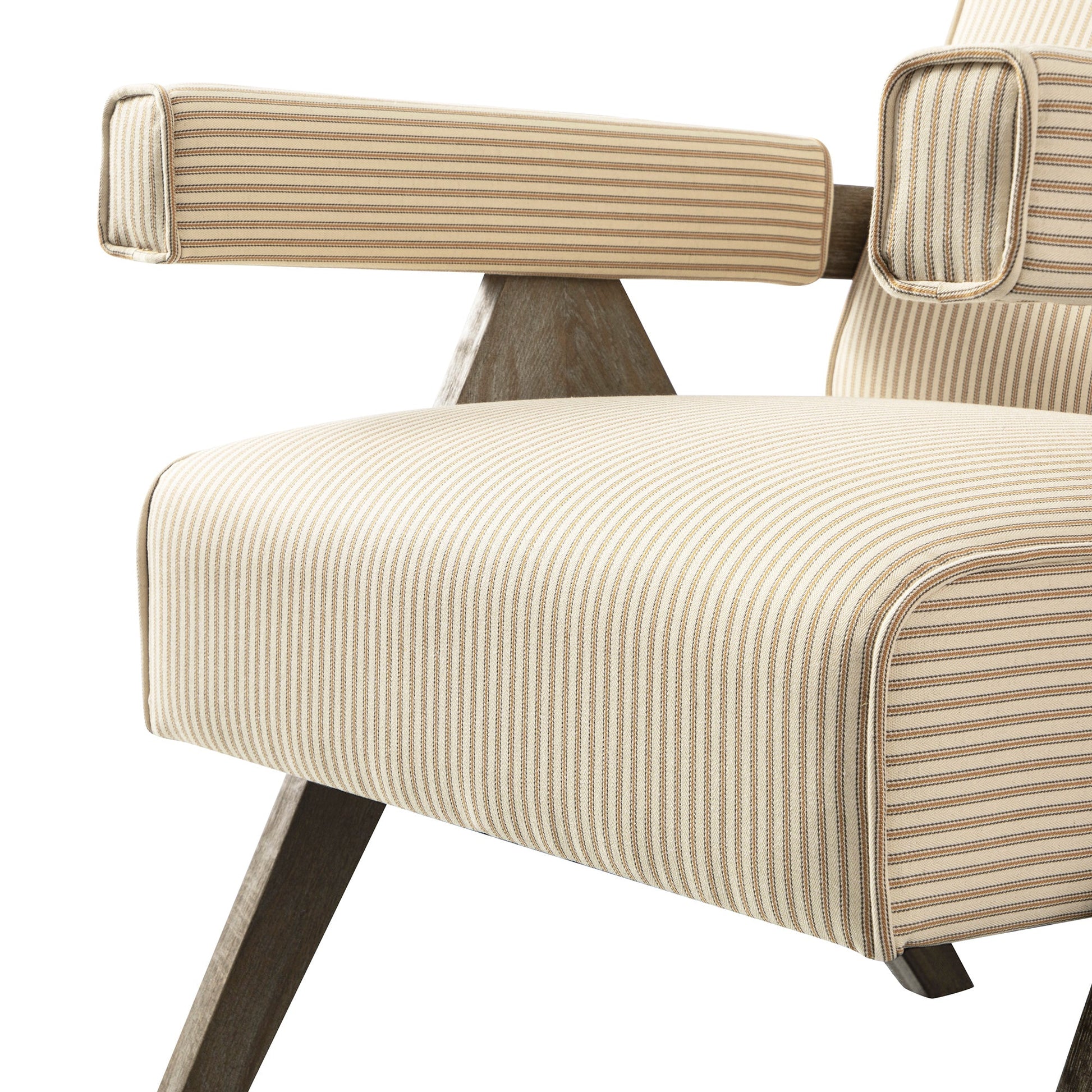Chinnor Ochre Striped Linen Blend Weathered Oak Frame Accent Chair