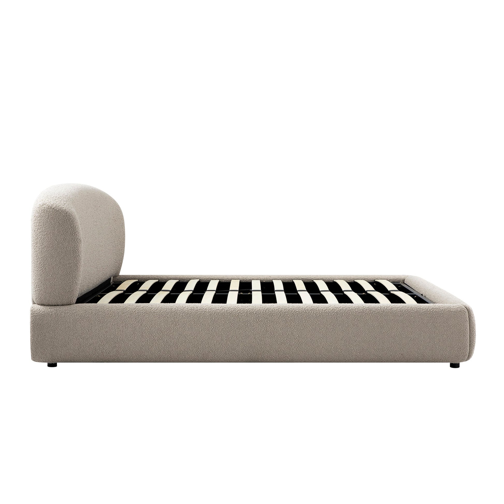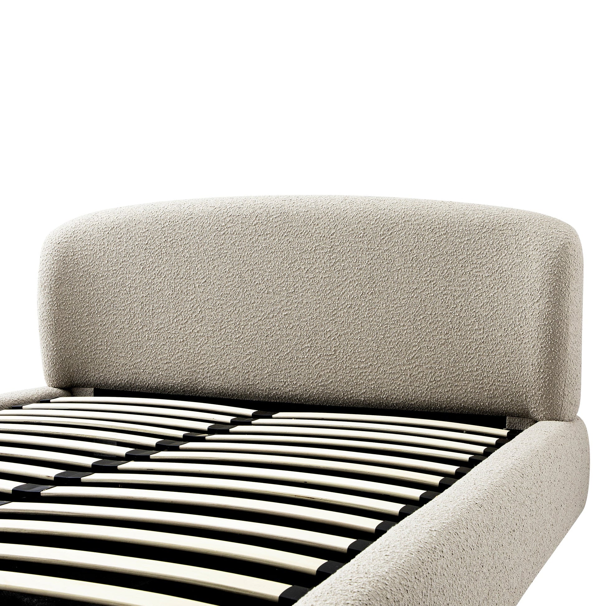 Constance Winged Headboard Ottoman Storage Bed, Light Taupe Boucle
