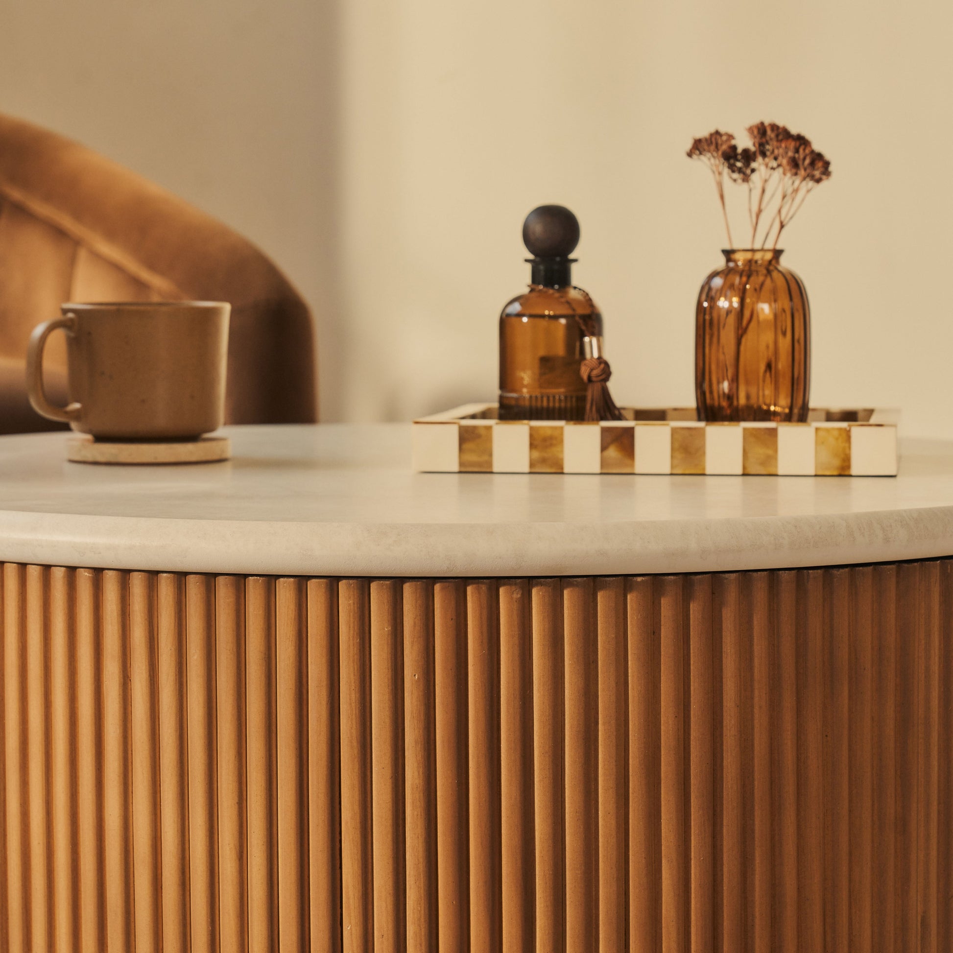 Cove - Warm Wood Ribbed Round Coffee Table