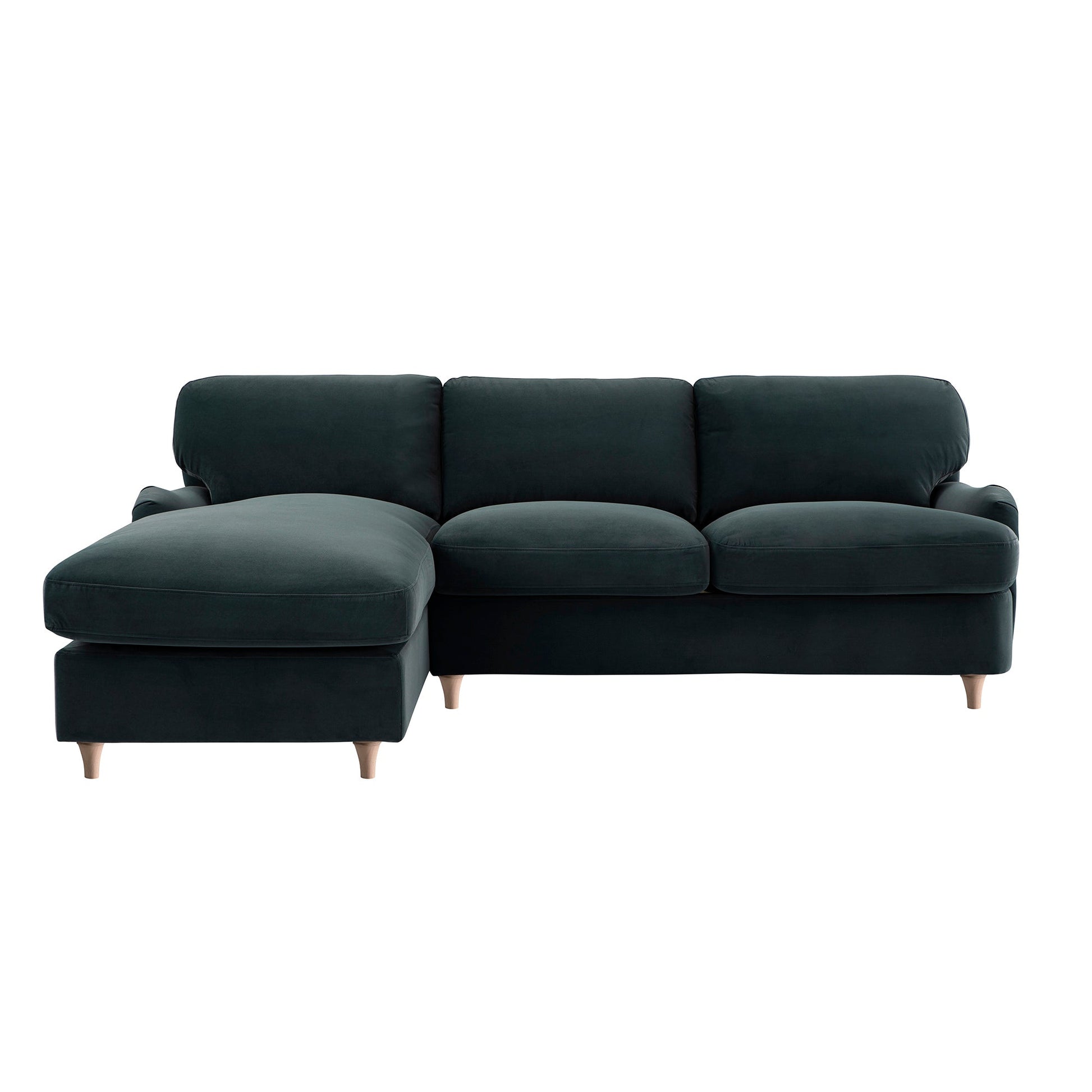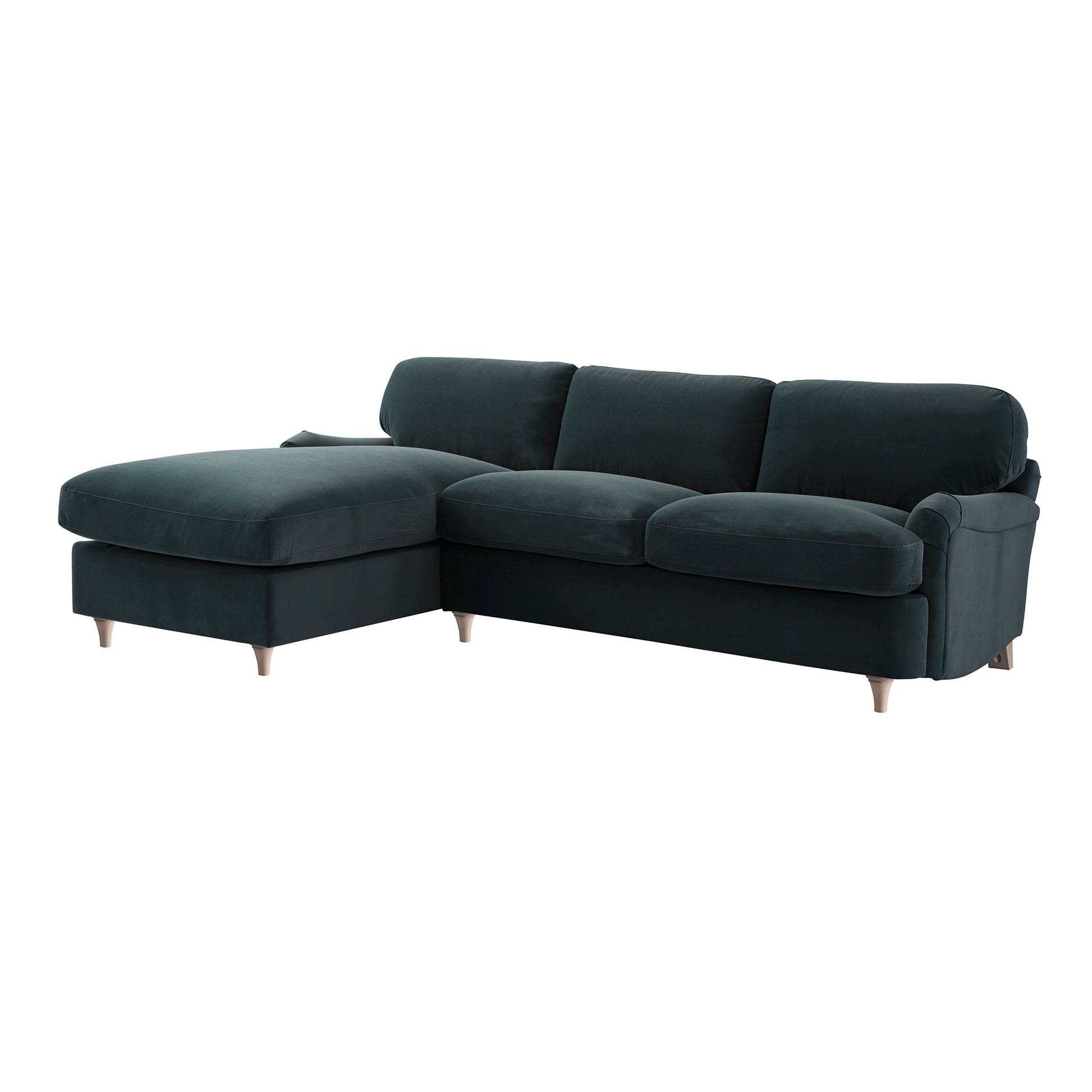 Daphnis Aegean Blue Velvet Sofa Bed, Grande Chaise Left Hand Facing