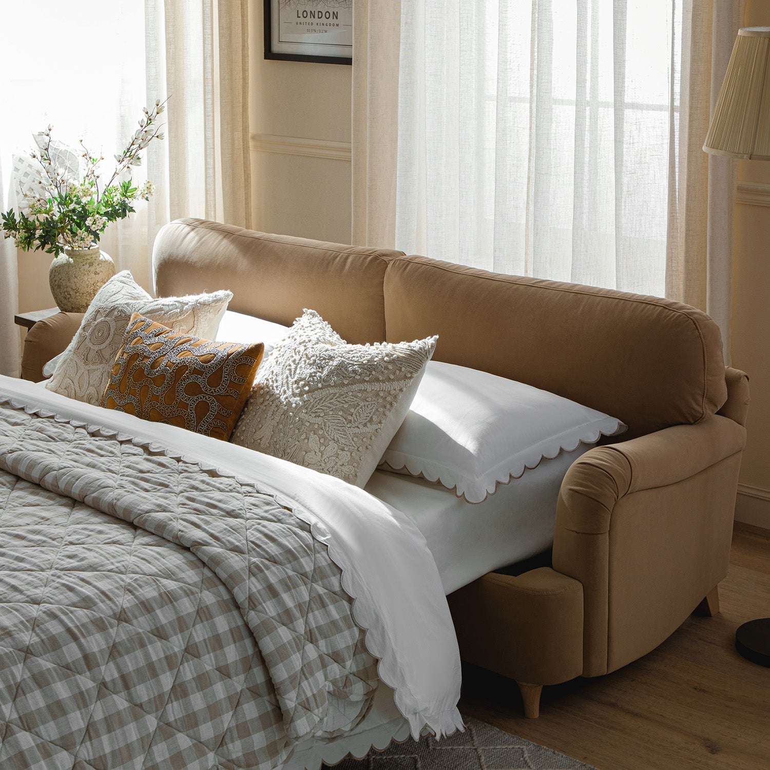 Daphnis Camel Velvet Sofa Bed, Large 3-Seater