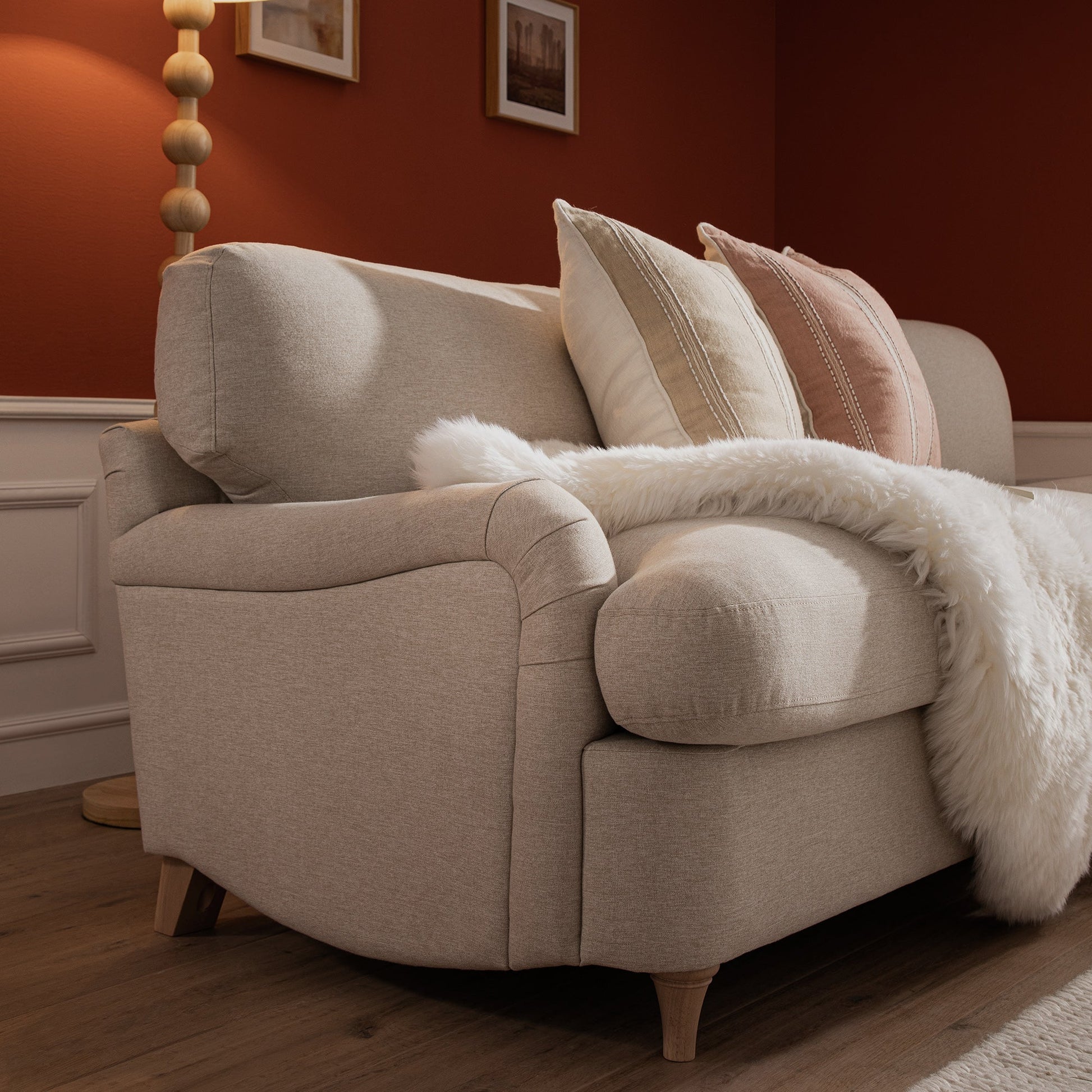 Daphnis Oatmeal Fabric Sofa Bed, Grande Chaise Right Hand Facing
