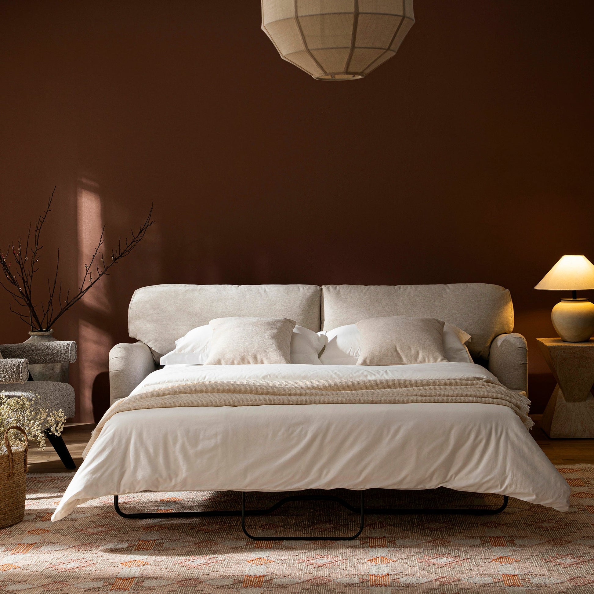 Daphnis Oatmeal Fabric Sofa Bed, Large 3-Seater