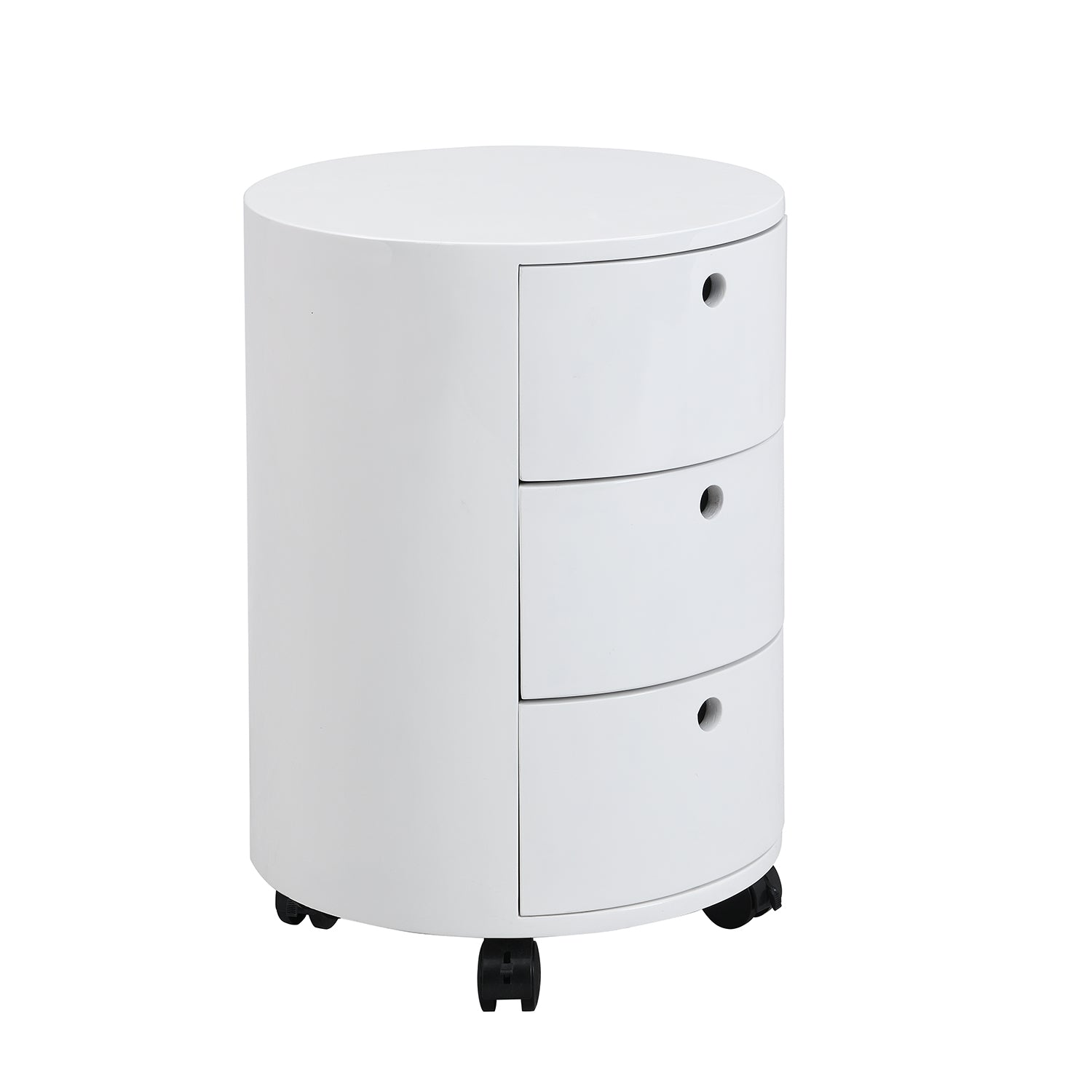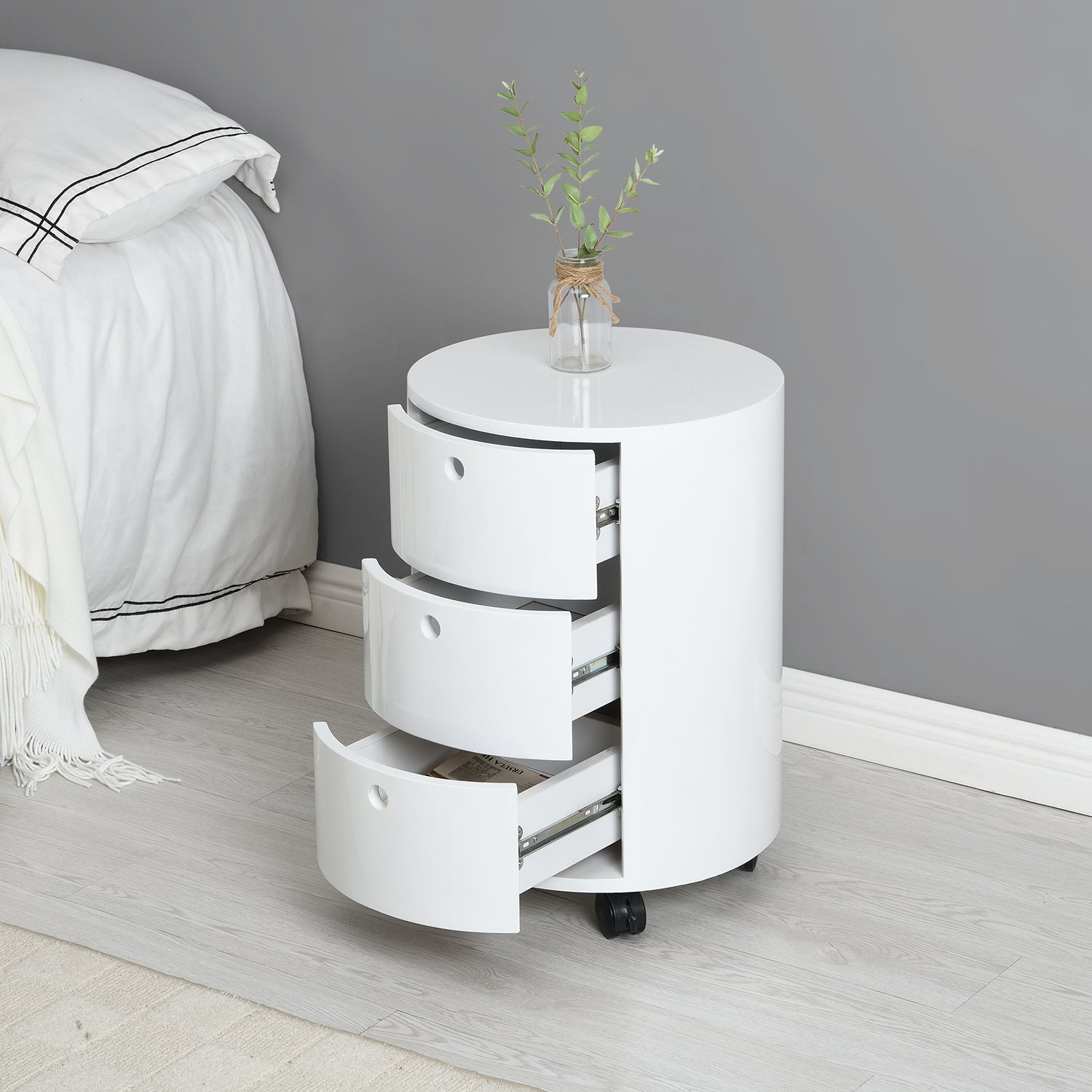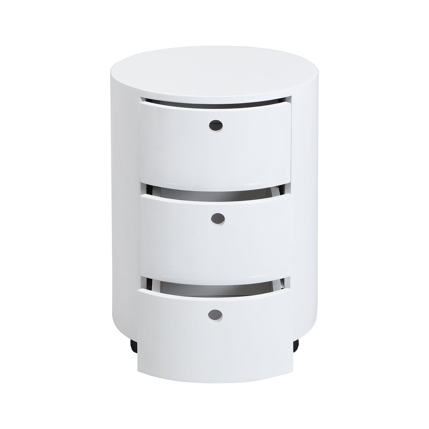 DOLIO Drum Chest Bedside Table, Barrel Side Table with Drawers High Gloss White 3 Drawer