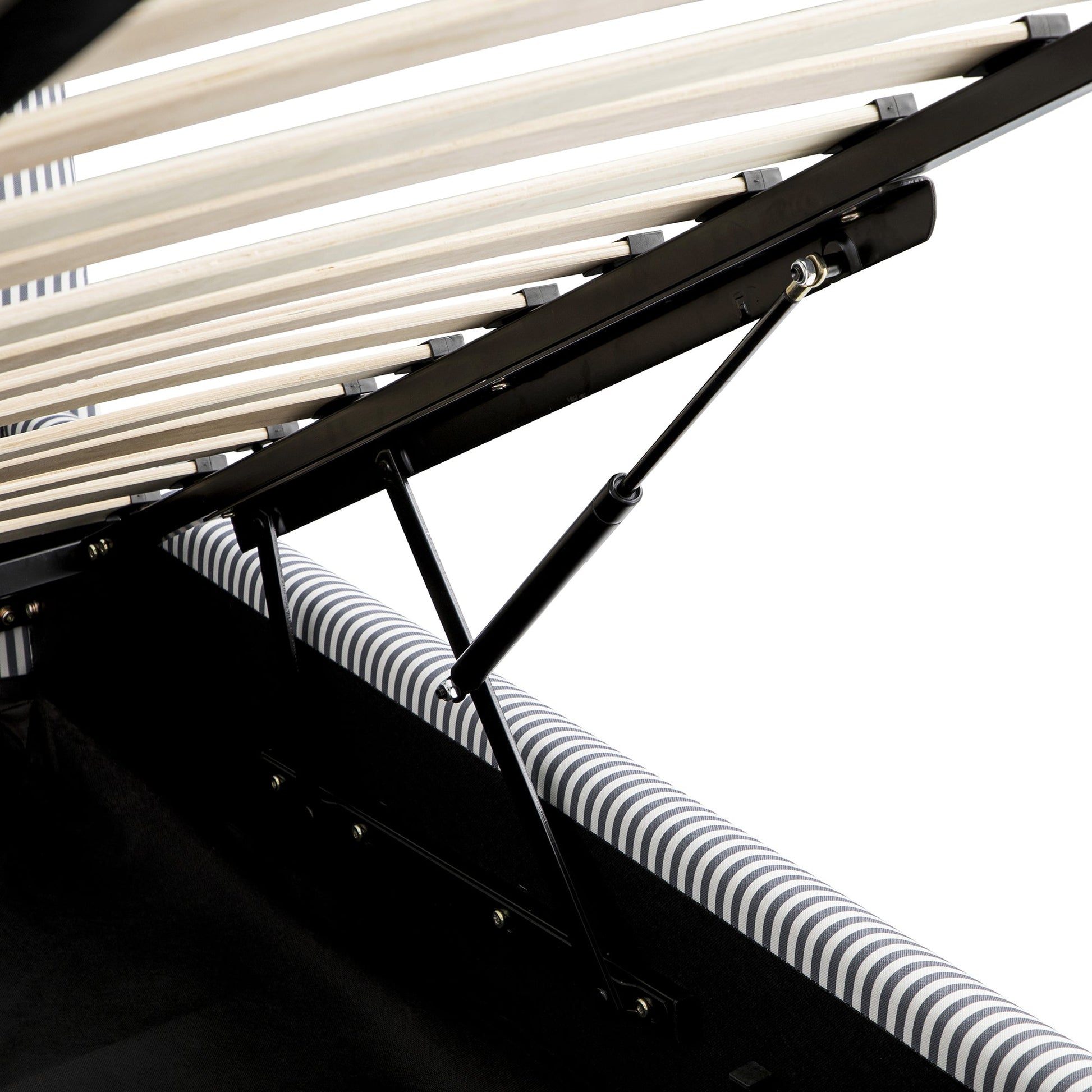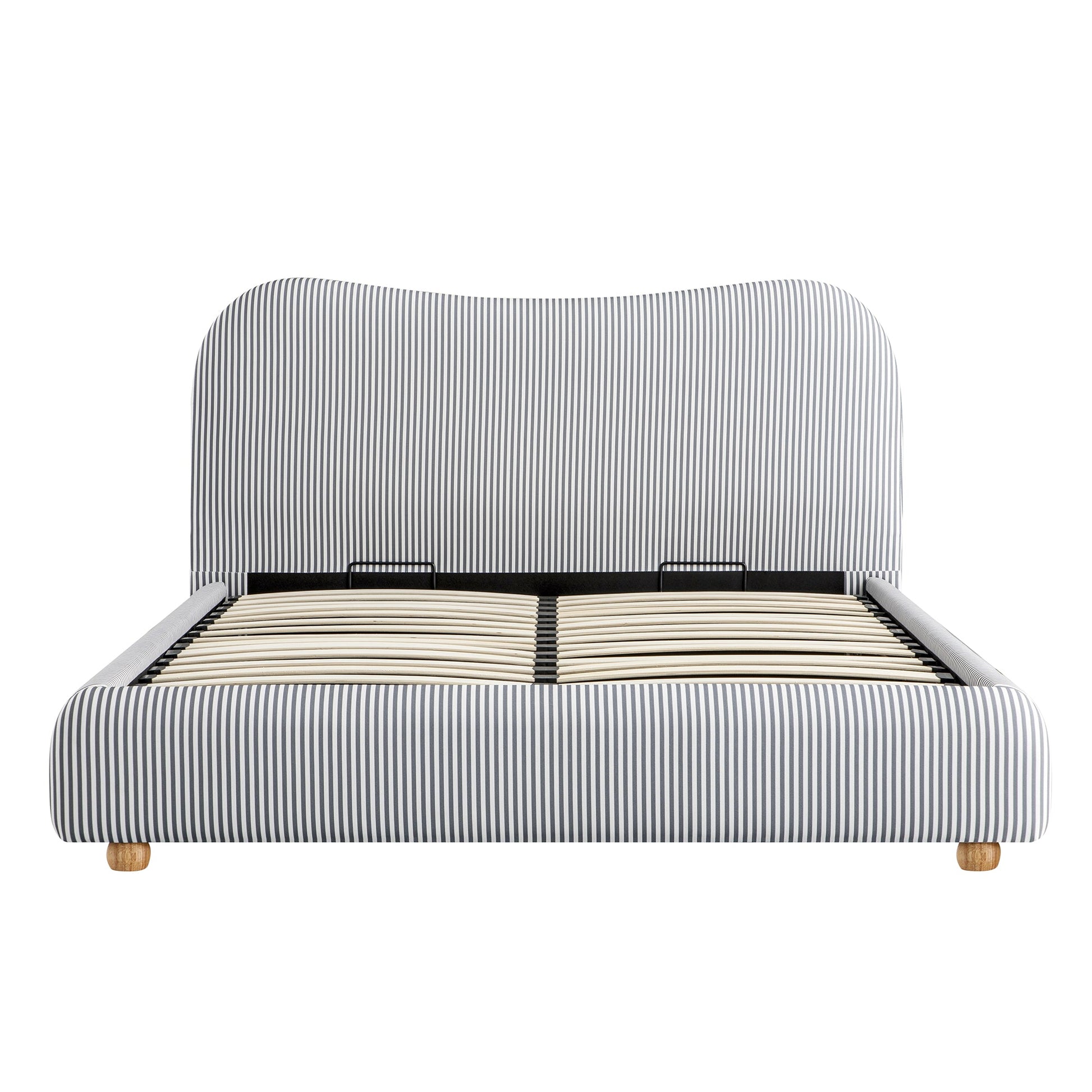 Egerie Curved Headboard Slate Blue Striped Fabric Ottoman Storage Bed