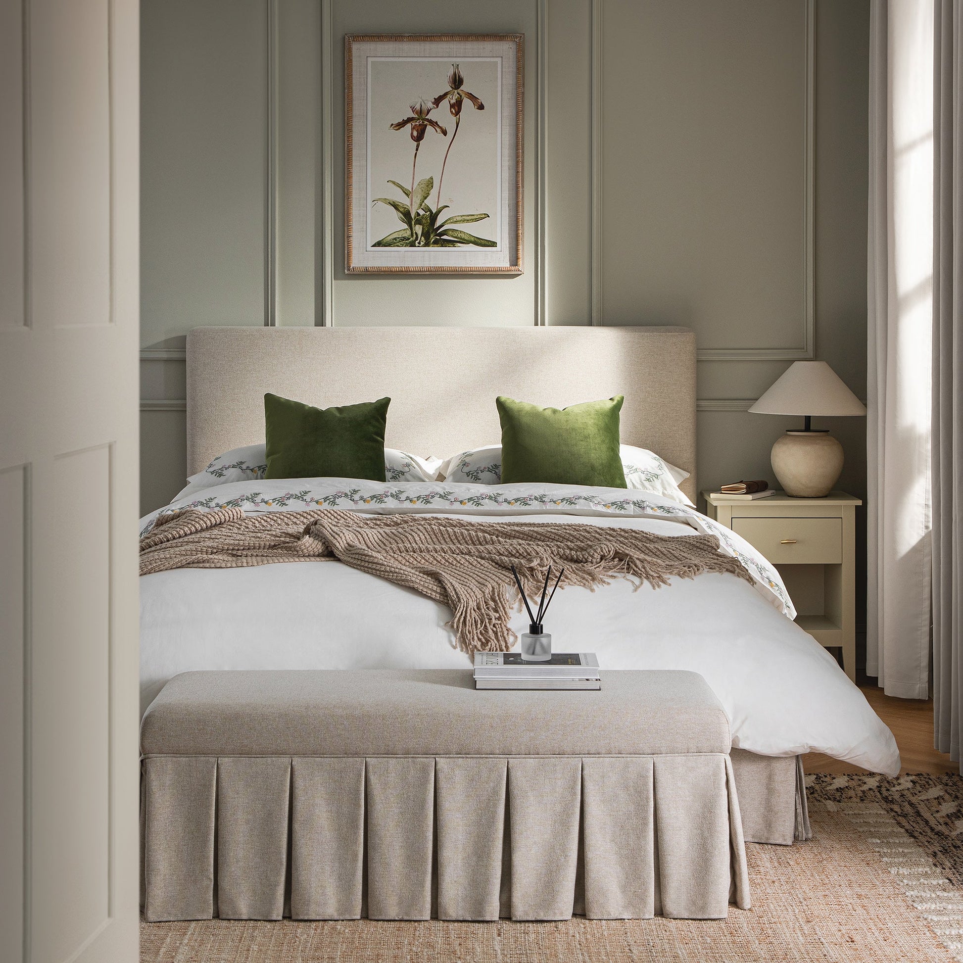 Egerton Box-Pleat Ottoman Storage Bed, Oatmeal Brushed Fabric