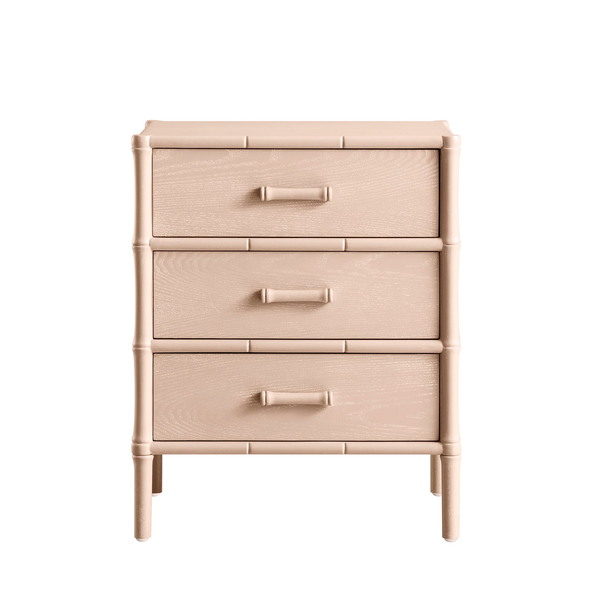 Elstowe Faux Bamboo 3-Drawer Bedside Table, Nude Pink