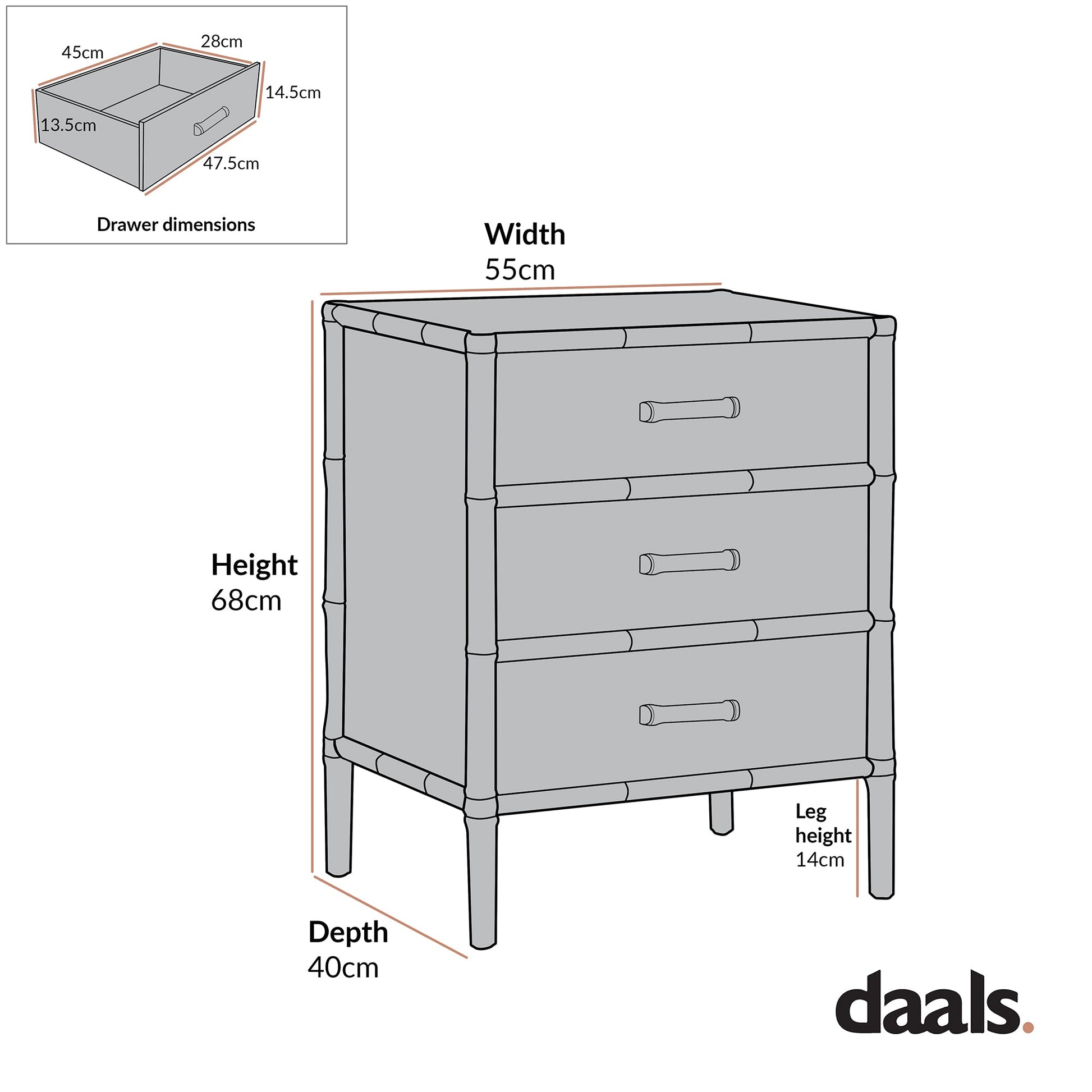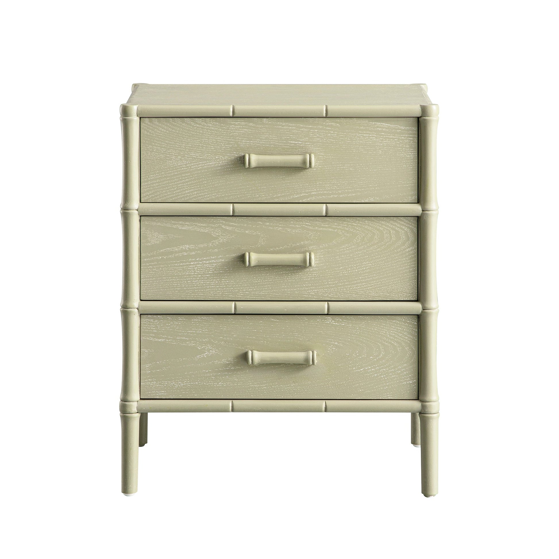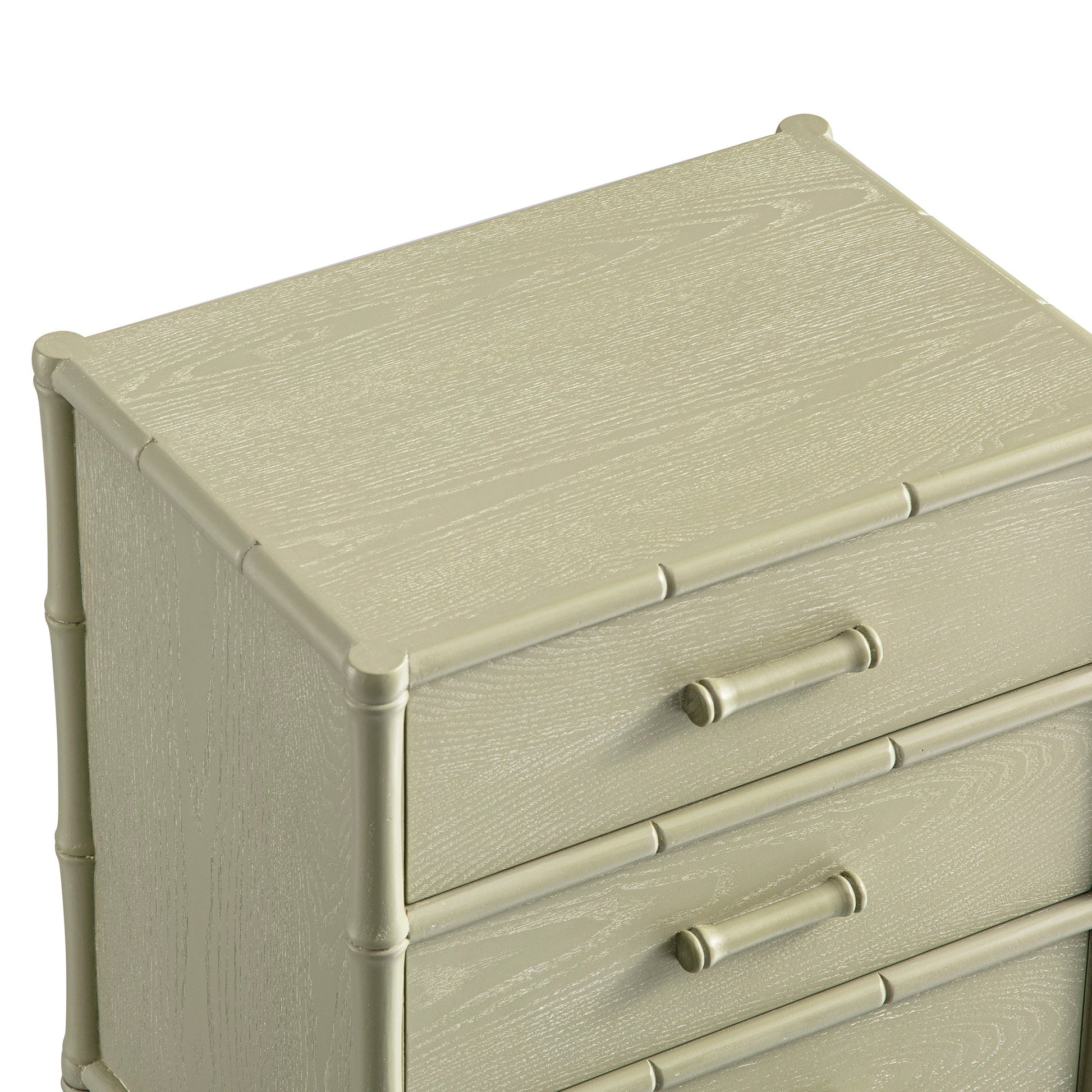 Elstowe Faux Bamboo 3-Drawer Bedside Table, Sage Green