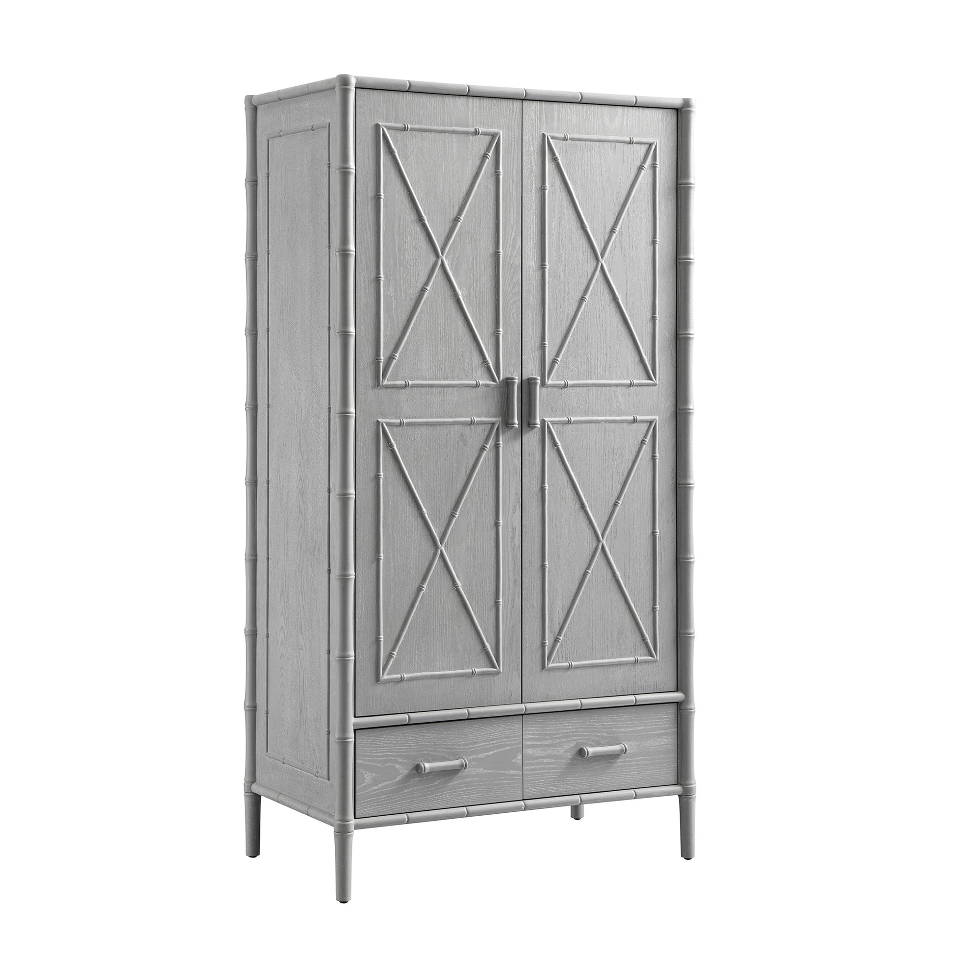 Elstowe Faux Bamboo Double Wardrobe, Warm Grey