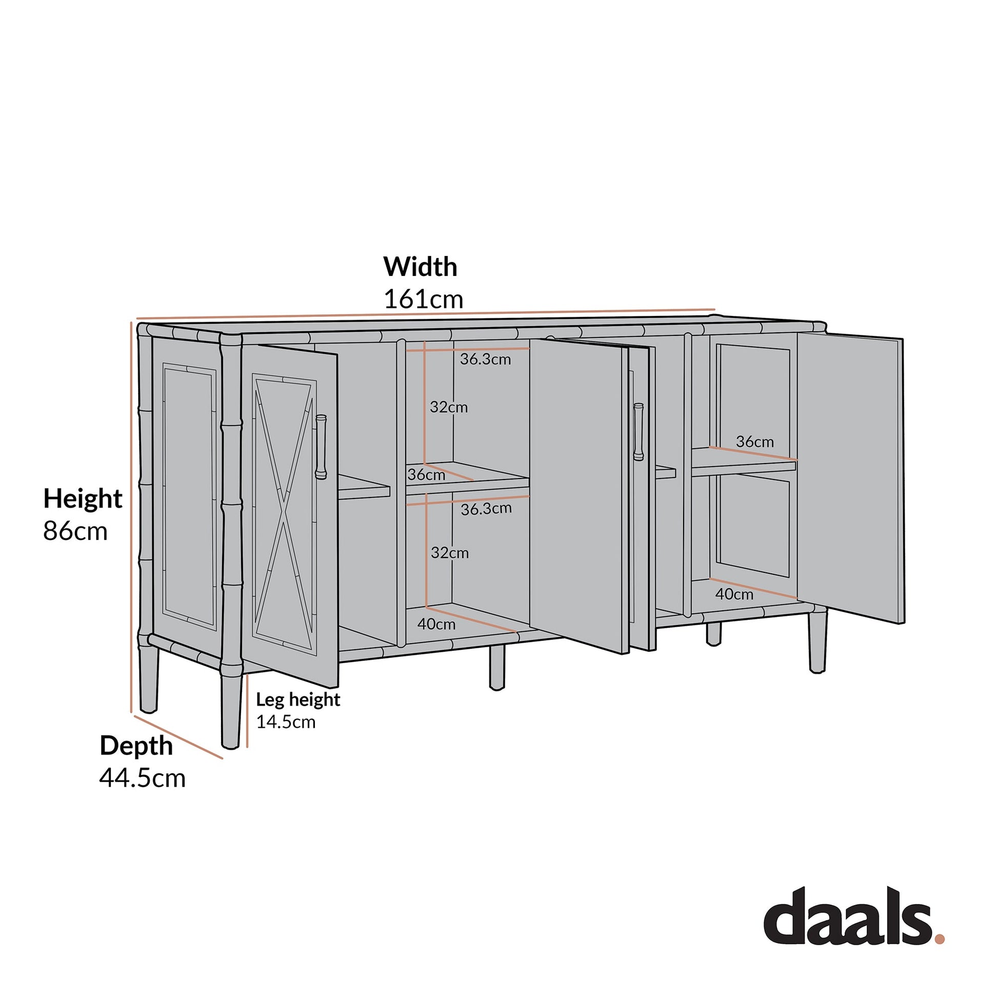 Elstowe Faux Bamboo Large Sideboard, Shaded White